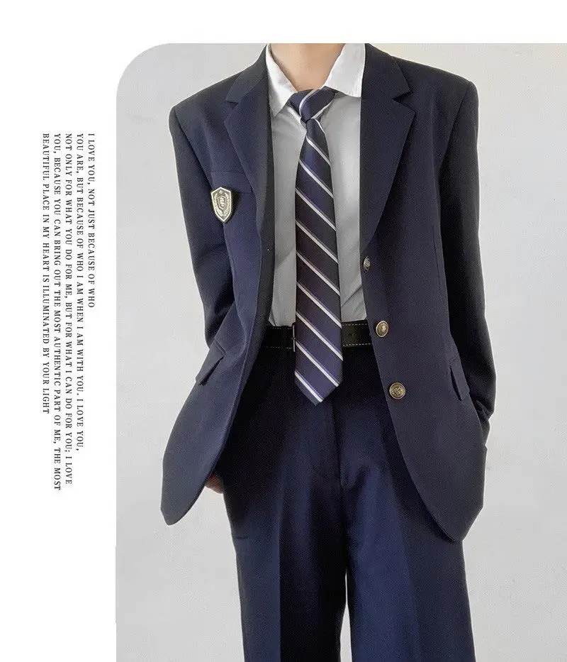 WIAOFELLAS - Autumn Winter Navy Blue Suit Jacket Trousers Set Fashion Men's Loose Casual High Street Personality Tops Pants Male Clothes