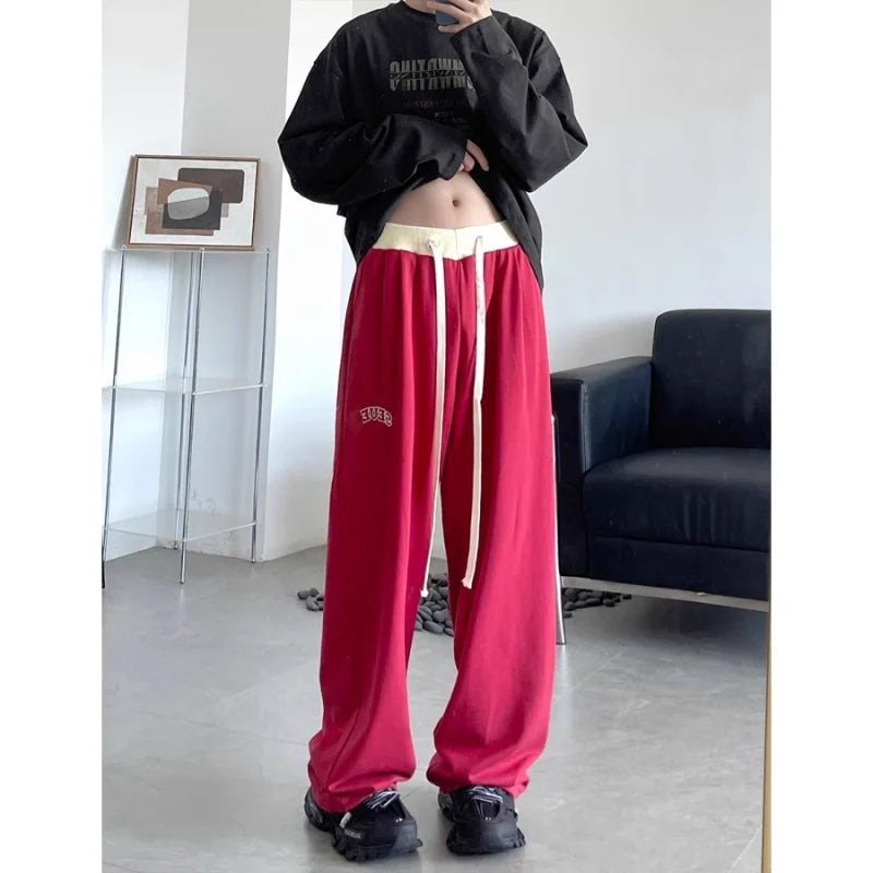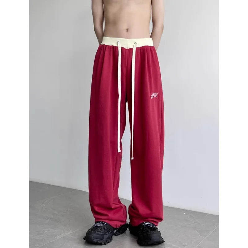 WIAOFELLAS - Autumn Winter New Fashion Elastic Waist Drawstring Pockets Solid American Style Men's Clothing Wide Leg Trousers All-match Pants