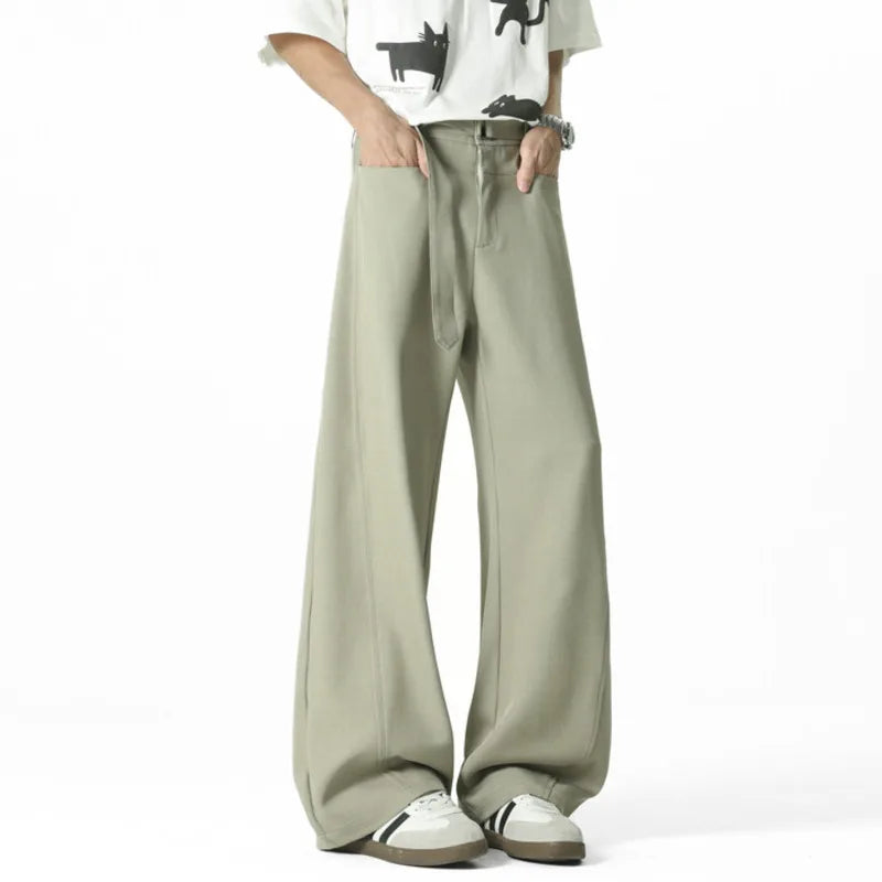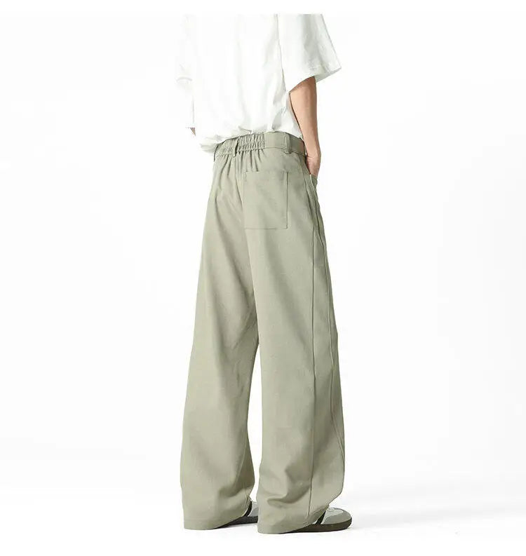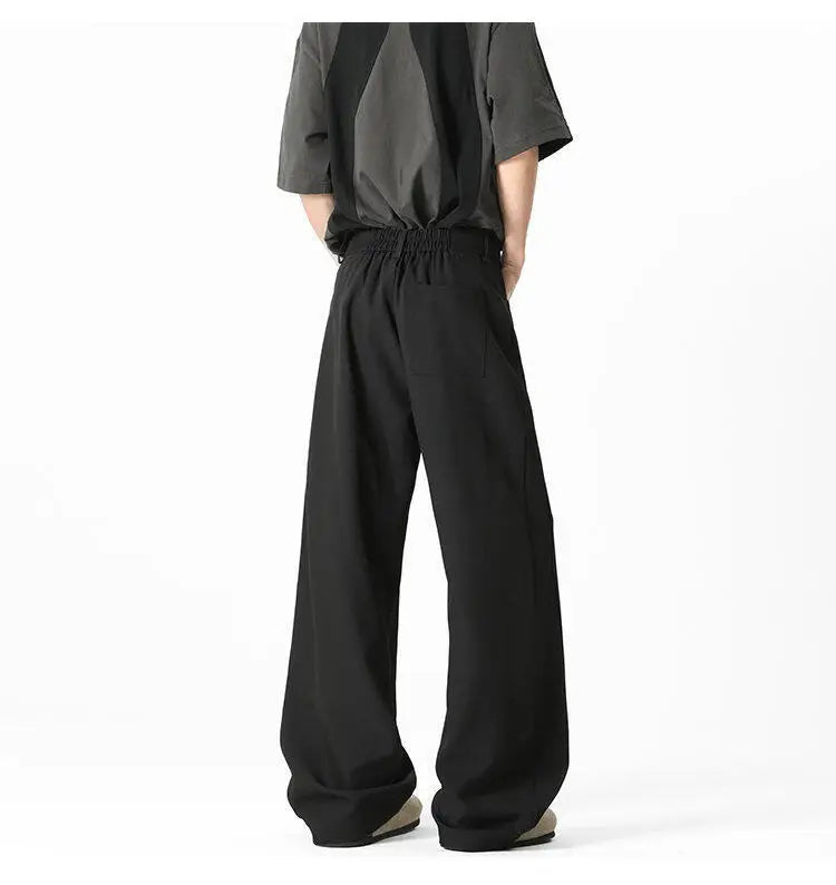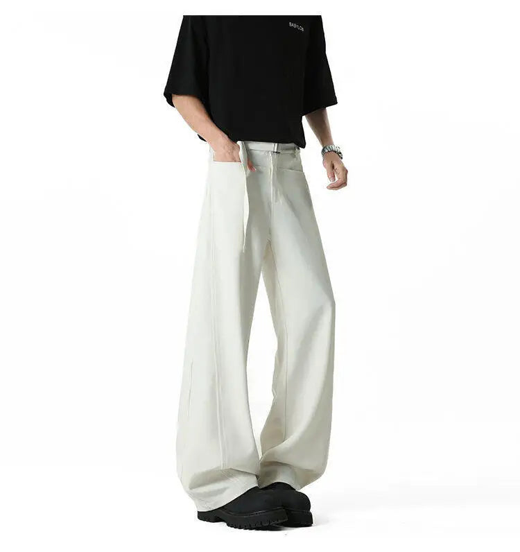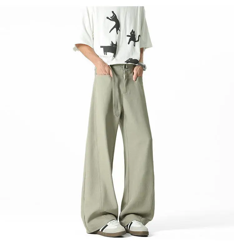 WIAOFELLAS - Belt Design Men's Suit Pants Solid Color Draping Ice Silk Deconstruction Straight Wide Leg Loose Male Bottom Summer