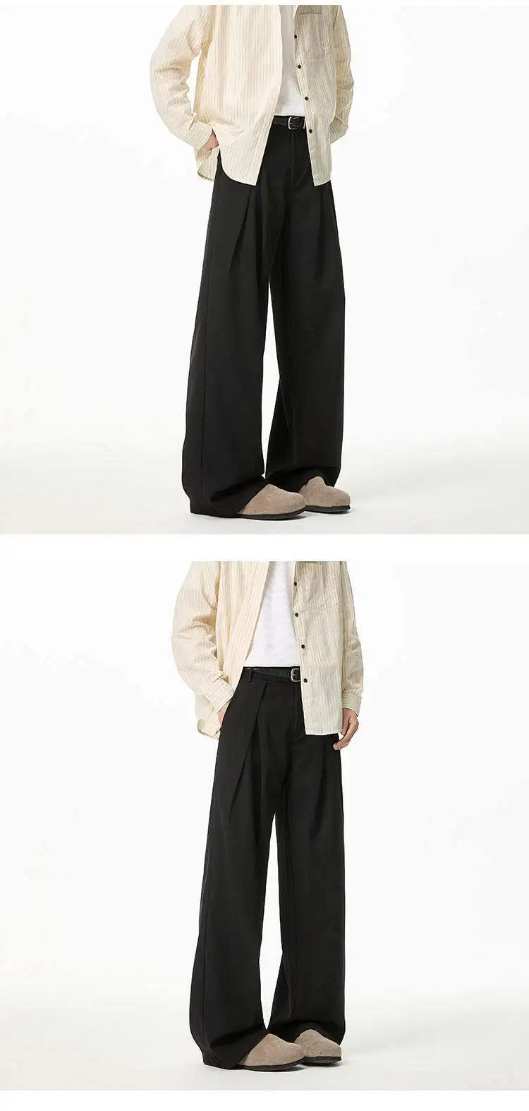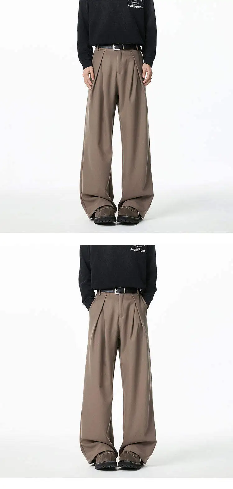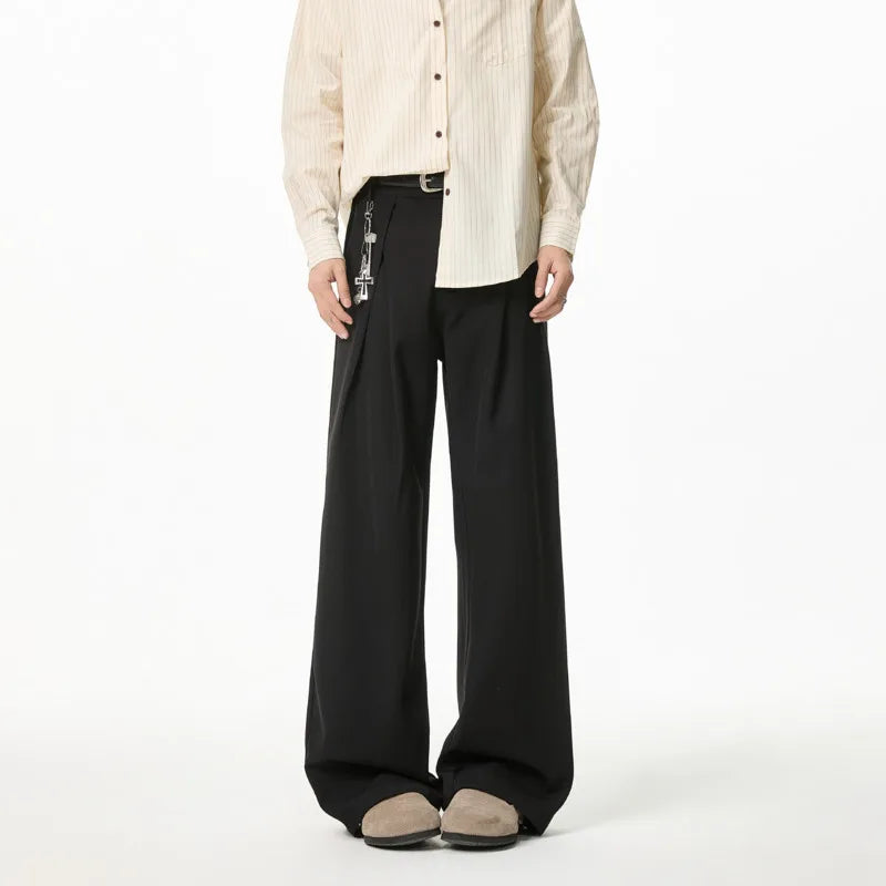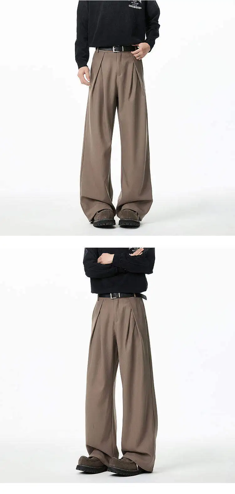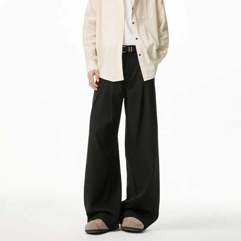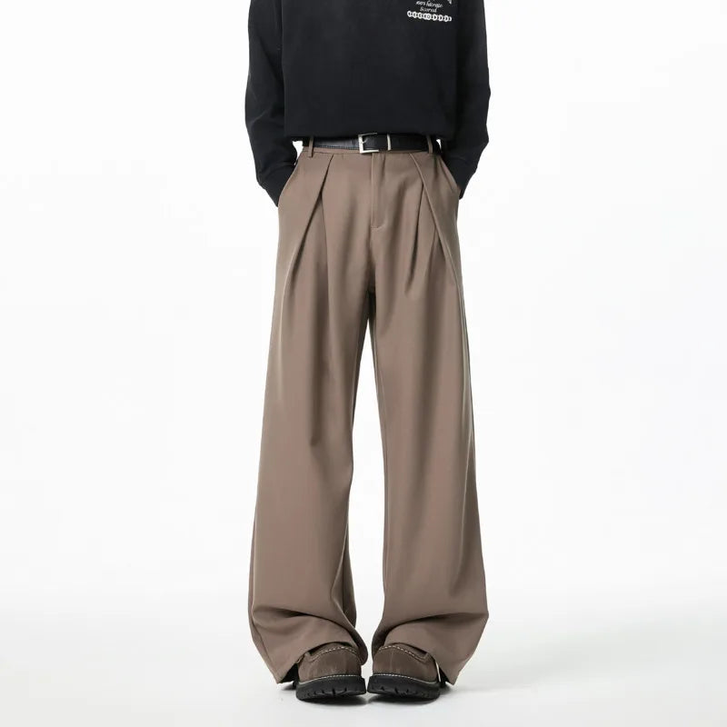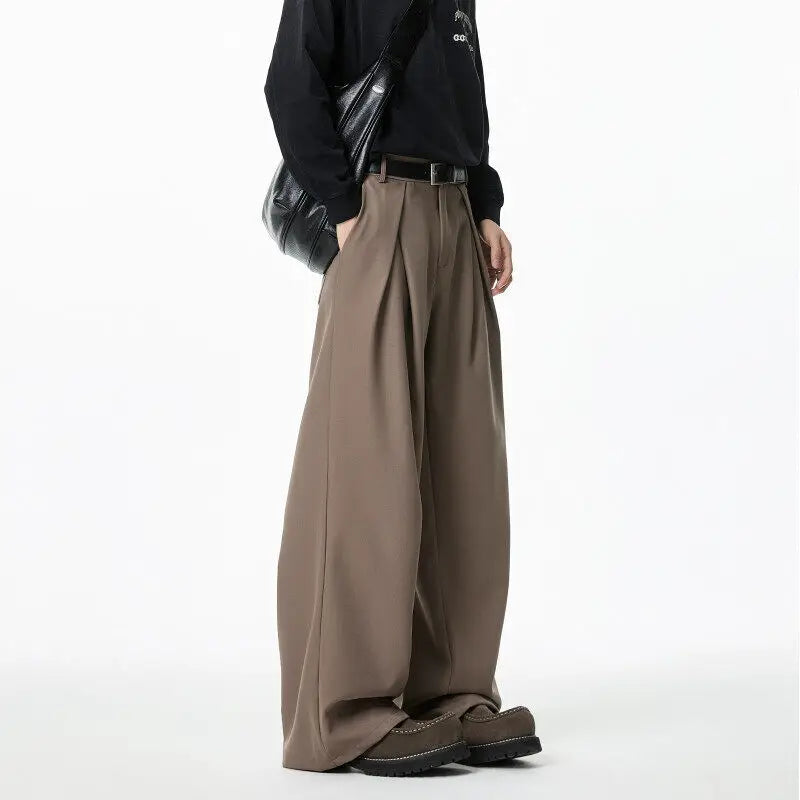 WIAOFELLAS - Black Brown Suit Pants Men Fashion Society Mens Dress Pants Korean Loose Wide Leg Pants Mens Office Formal Trousers Plus Size