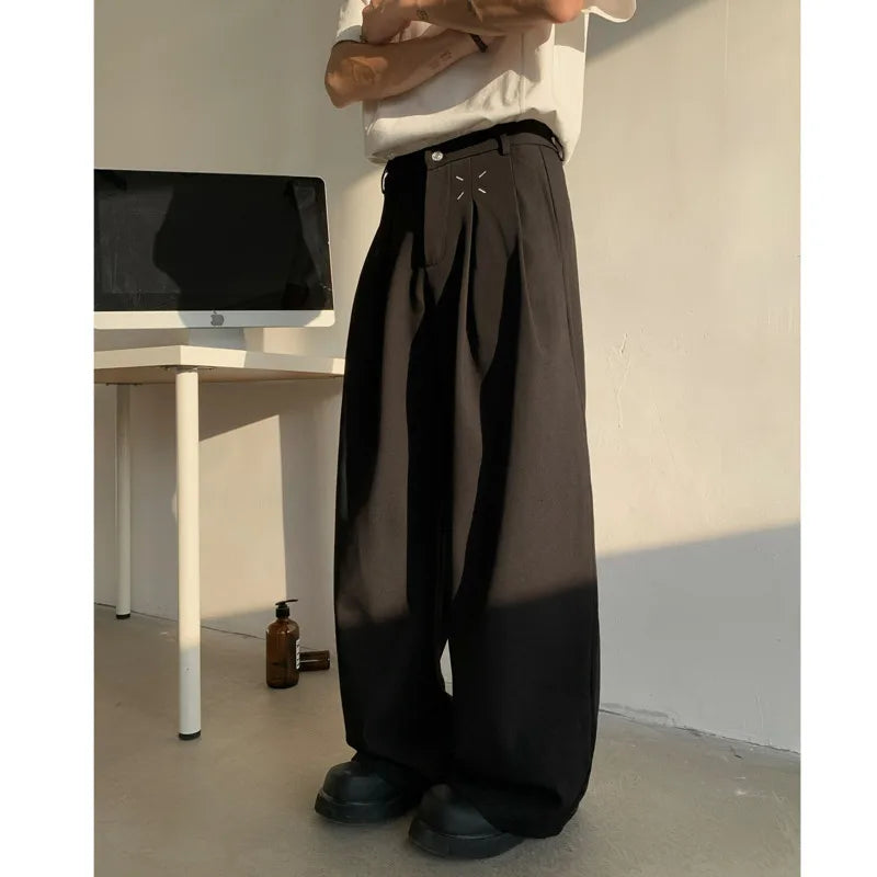 WIAOFELLAS - Black Suit Pants Men Society Mens Dress Pants Korean Loose Casual Wide Leg Pants Mens Office Formal Trousers Plus Size 5XL