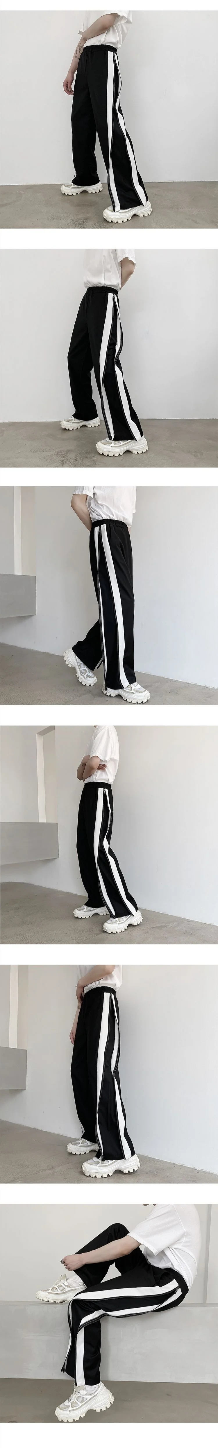 Wiaofellas Black Trend Casual Floor Pants Men's Loose Side Zipper Straight Trousers New Wide Leg Pants Elastic Waist Pants 2Y2722