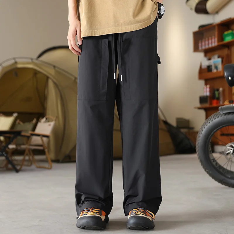 WIAOFELLAS - Boyfriend Cargo Bloomers Trousers Men's Clothing Casual Loose Solid Color Elastic High Waisted Pockets Spring Autumn Pants