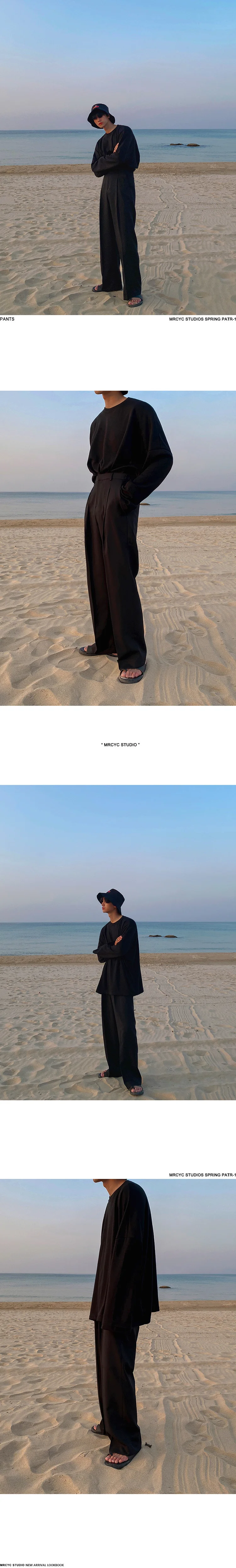 WIAOFELLAS - Business Men's Trousers Spring New Straight Tube Loose Suit Pants Korean Fashion Black Wide Leg Pants Male 2Y2352