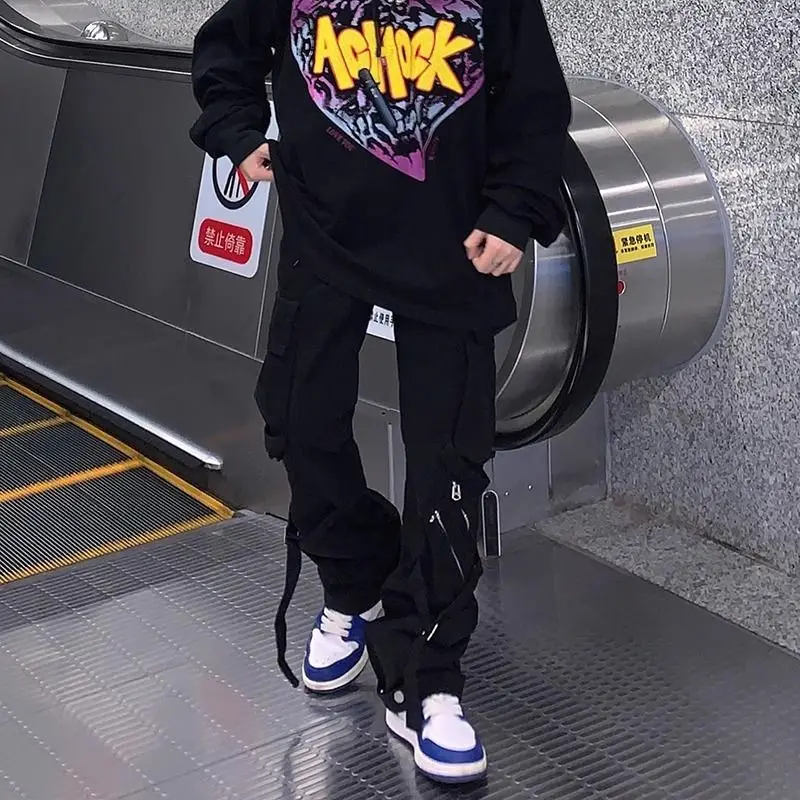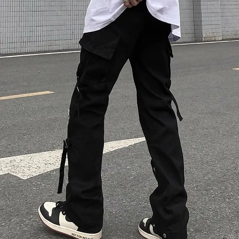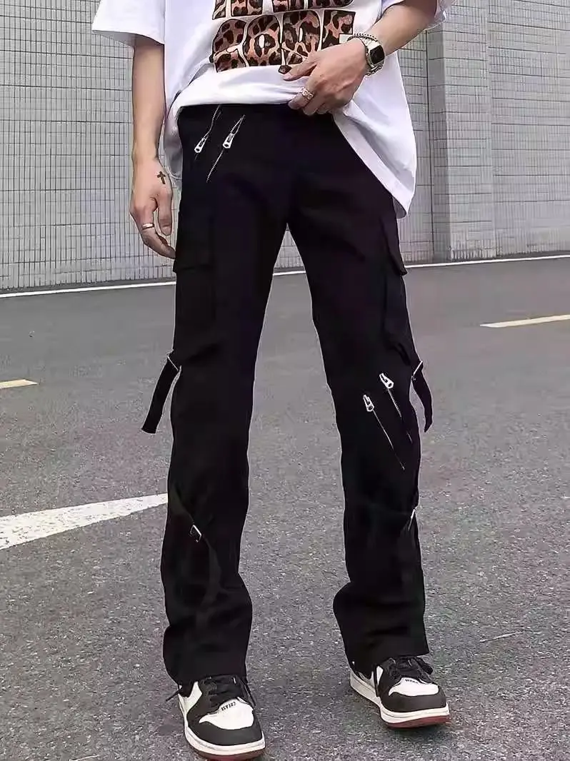 WIAOFELLAS  -  Button Zipper High Waist Solid Color Pockets Trousers Cargo Men's Clothing Wide Leg Spring Autumn Preppy Style Vacation Pants