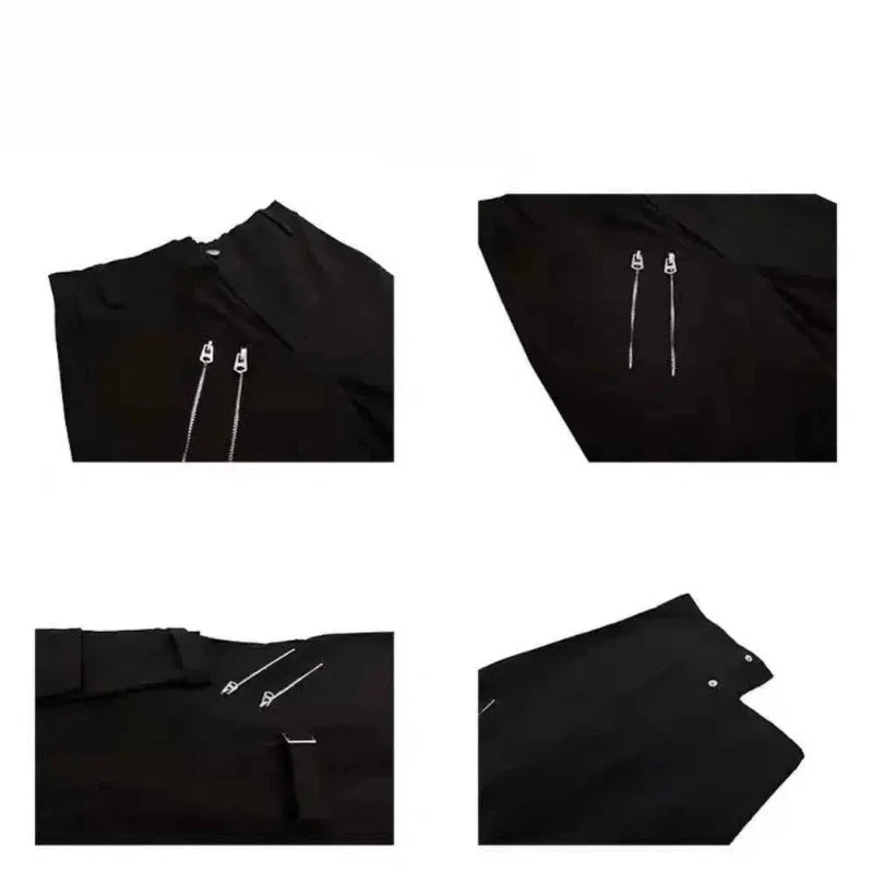 WIAOFELLAS - Button Zipper High Waist Solid Color Pockets Trousers Cargo Men's Clothing Wide Leg Spring Autumn Preppy Style Vacation Pants