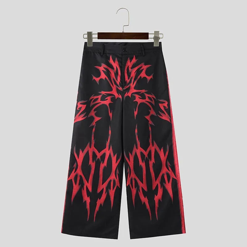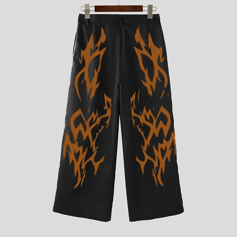 WIAOFELLAS - Casual Printing Wide Leg Trousers Men Street Fashion Loose Long Pants Gradient Pattern Handsome Button Male Bottoms