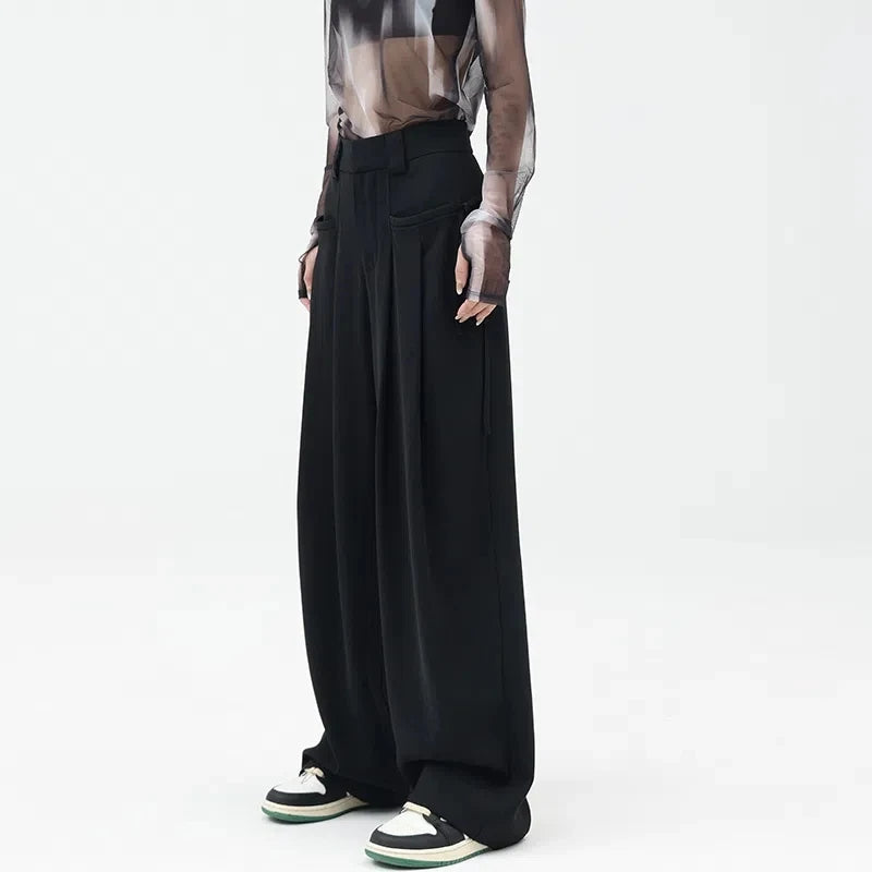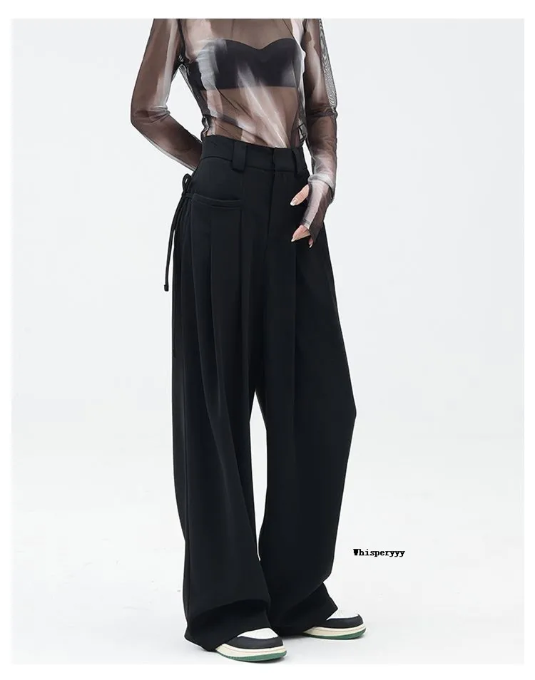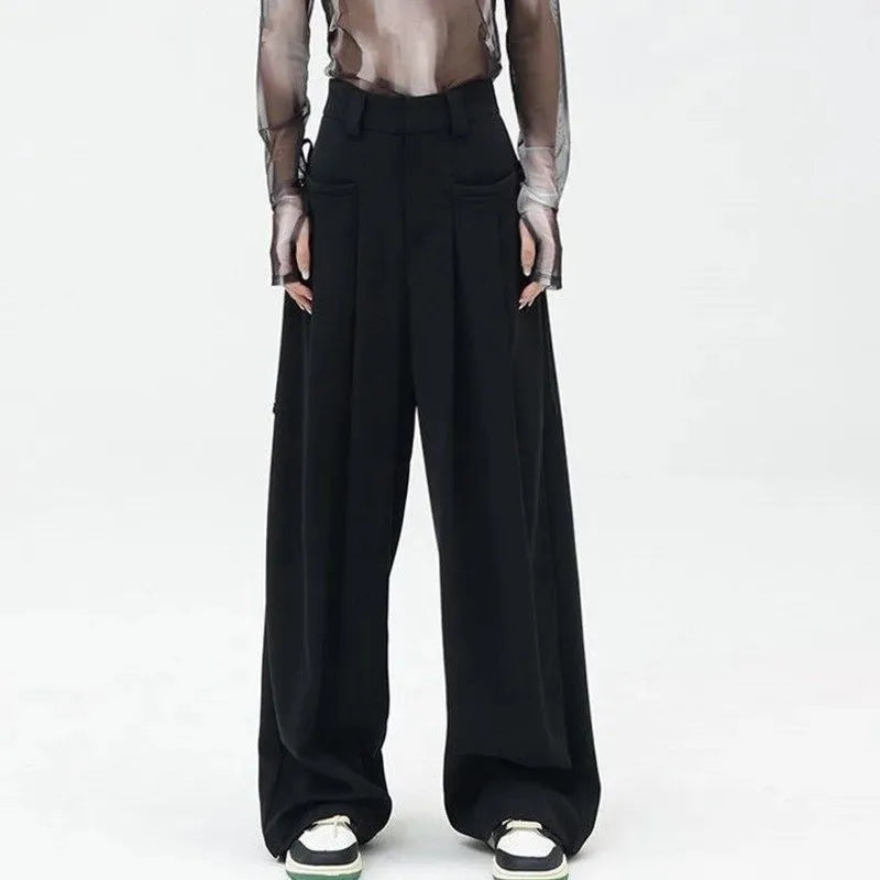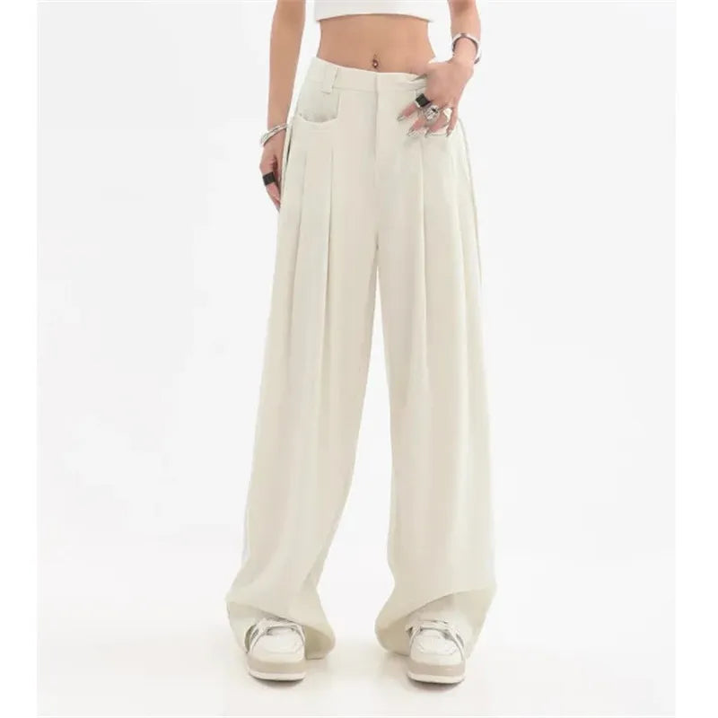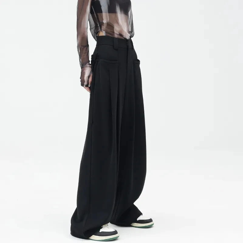 WIAOFELLAS - Casual Suit Pants Men Women Summer High Waist Solid Color Pantalones Hombre Harajuku Loose Wide Leg Trousers Pocket Streetwear