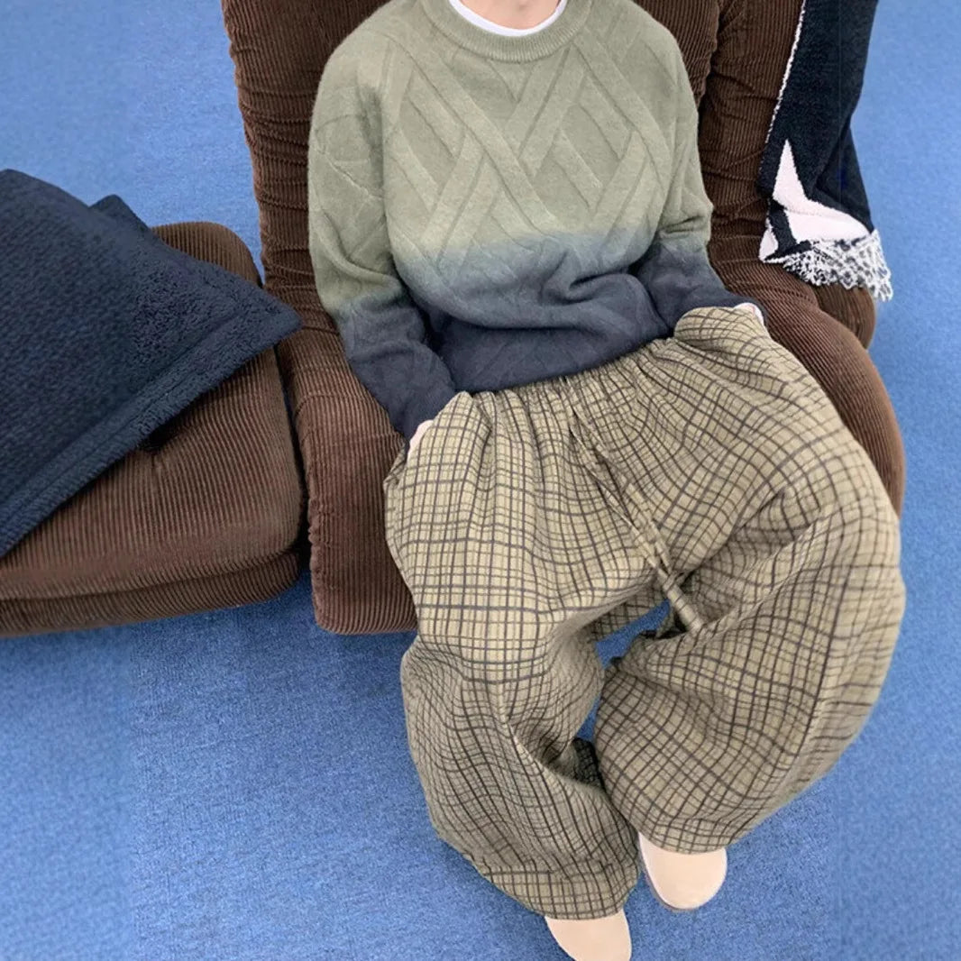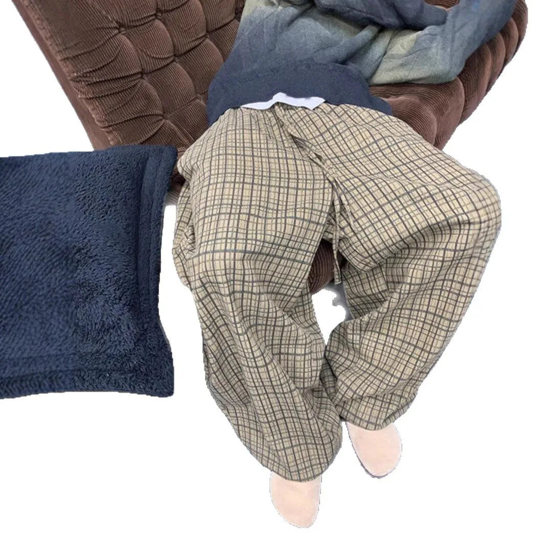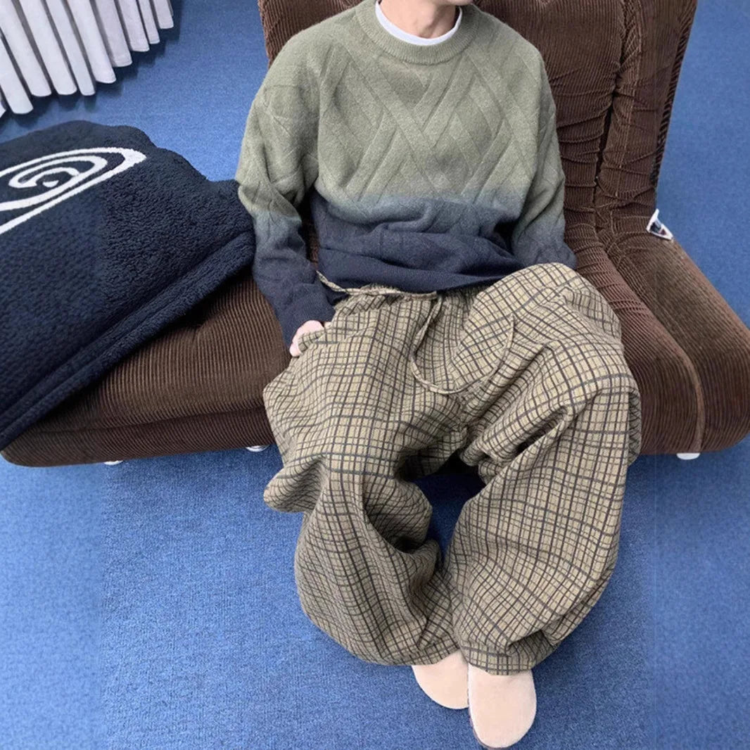 WIAOFELLAS - cleanfit plaid pants men's spring and autumn style lazy and relaxed outfit American tall wide-leg extended trousers