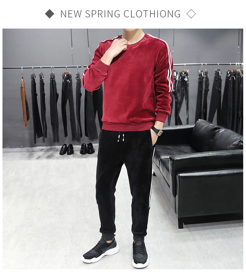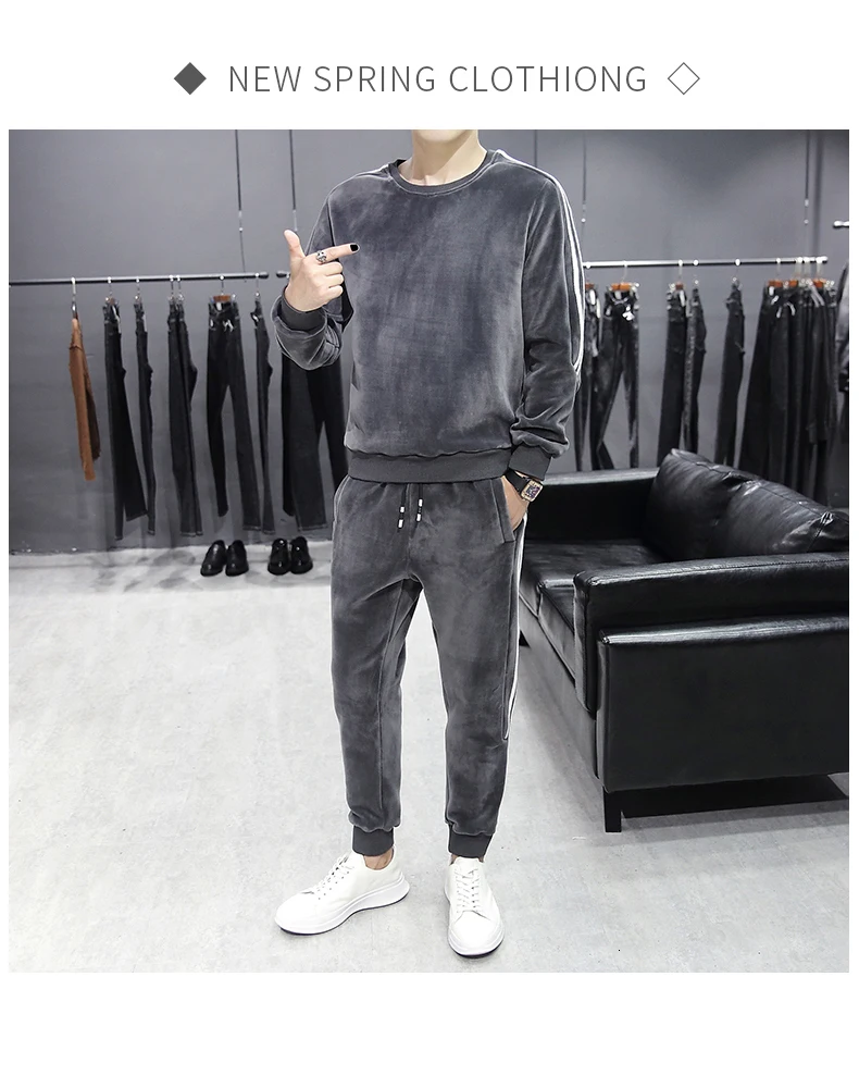 WIAOFELLAS - Conjunto Hombre Autumn Casual Cotton Sportswear Jacket Tracksuit Fashion 2 Piece Sweatshirt Sweatpants Sets Men