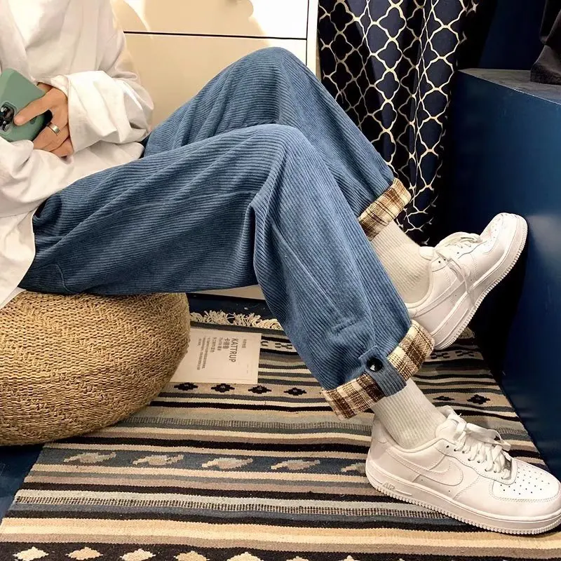 Wiaofellas - Corduroy Pants Men's Autumn and Winter Trend Sports Pants Loose Straight Wide Leg Casual Pants Men