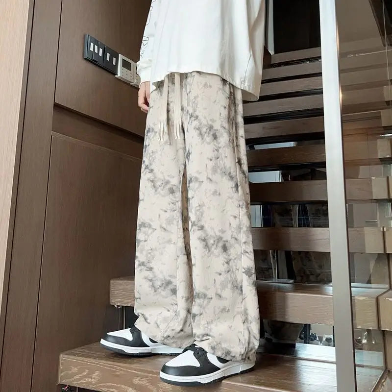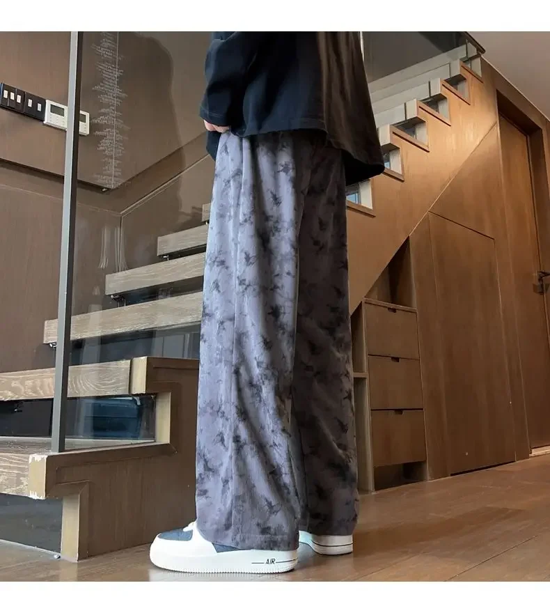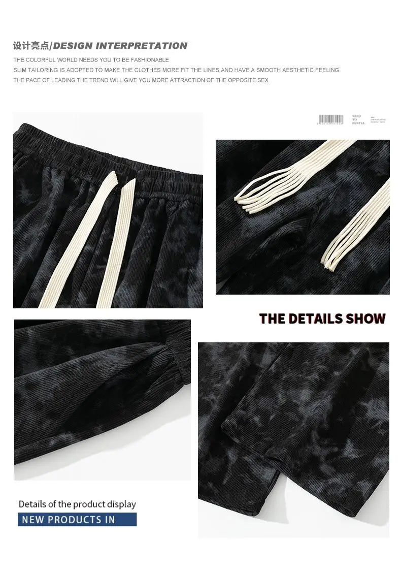WIAOFELLAS - Corduroy Tie-dye Irregular Pants for Men American Loose Casual Sports Wide-leg Trousers