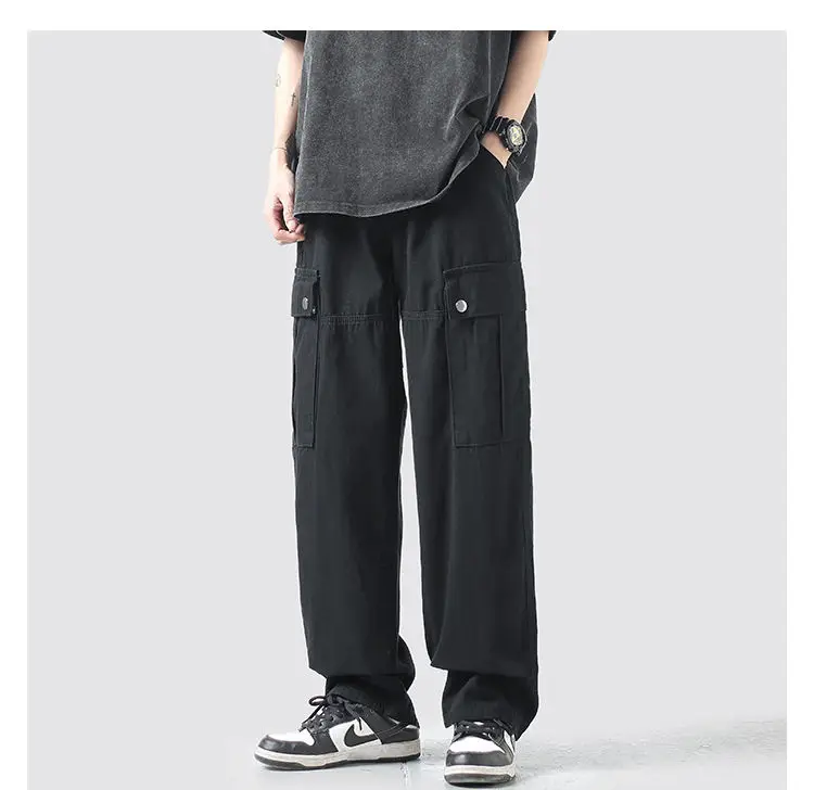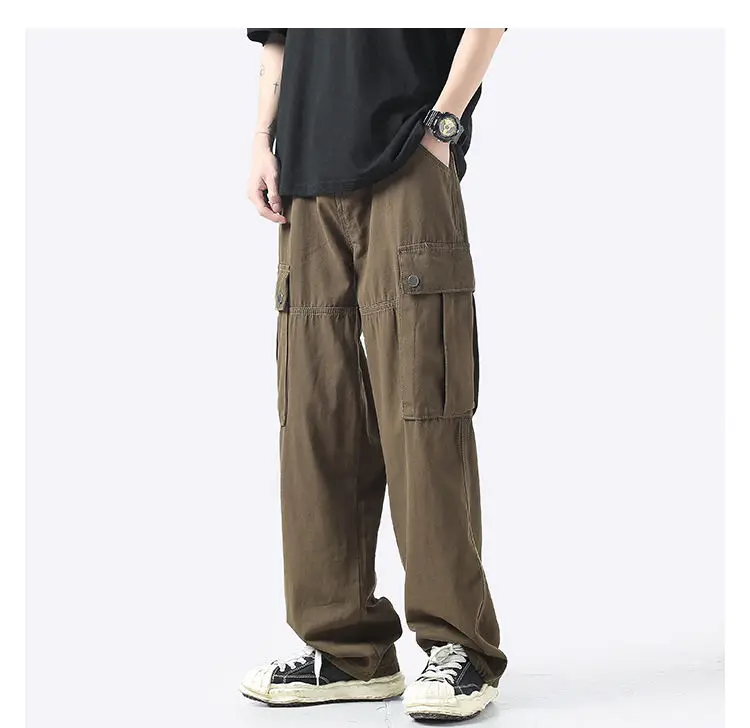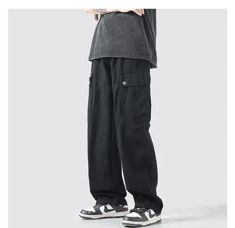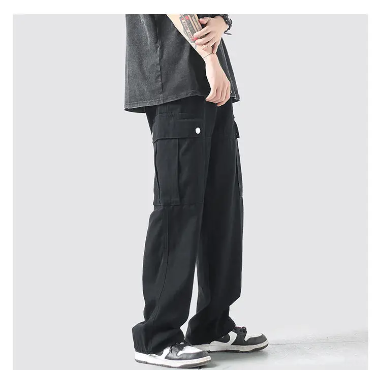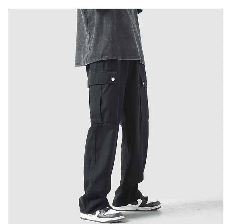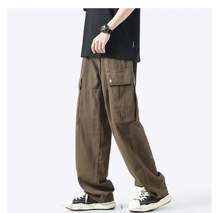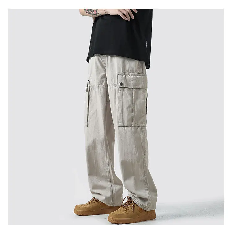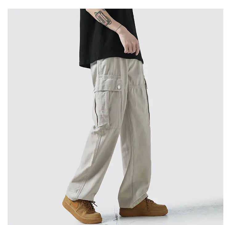 Wiaofellas Cotton Cargo Pants Men Fashion Casual Pocket Casual Pants Men Streetwear Wild Loose Hip-hop Straight Pants Mens Trousers M-2XL