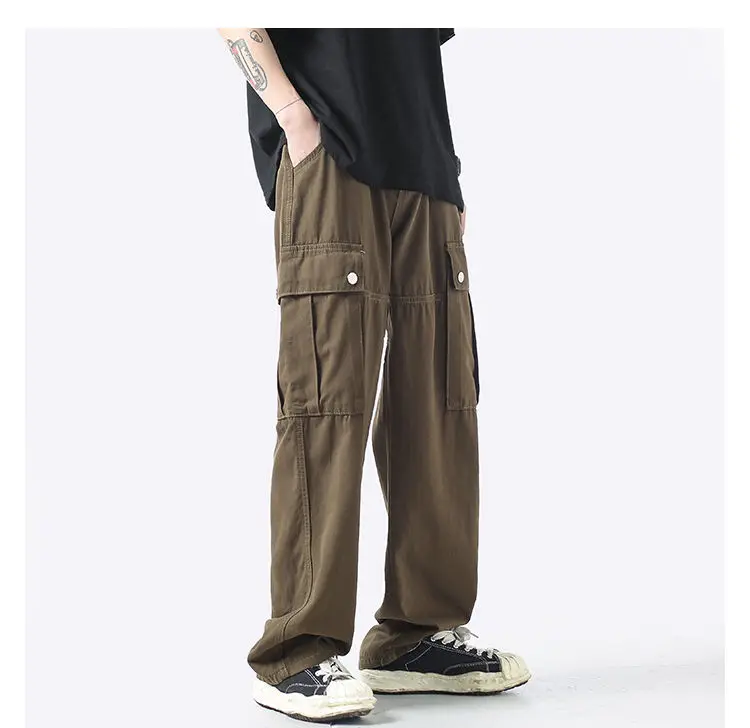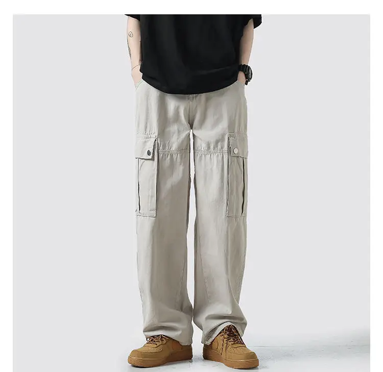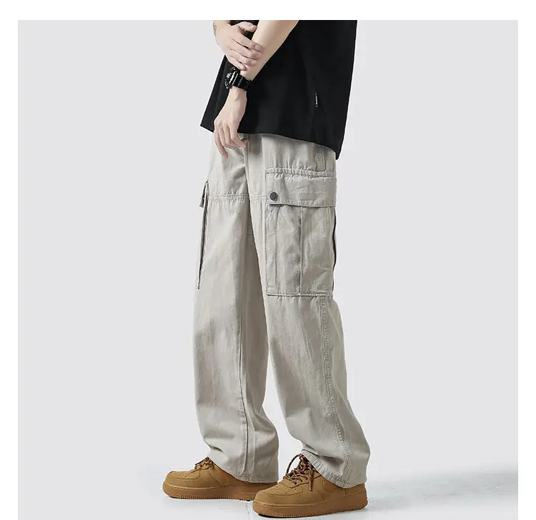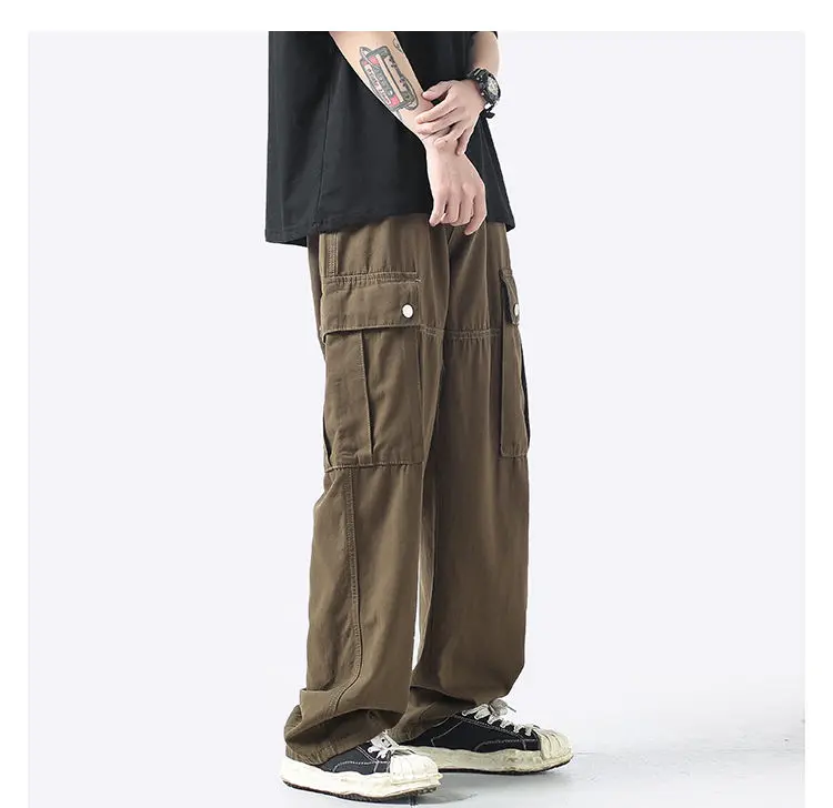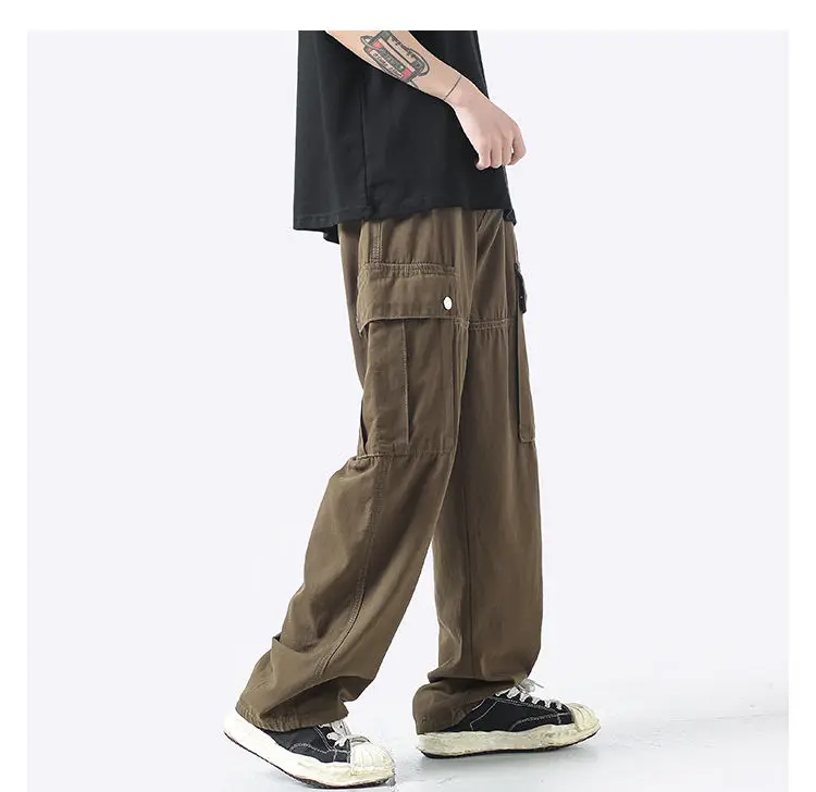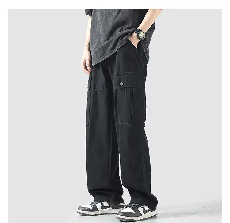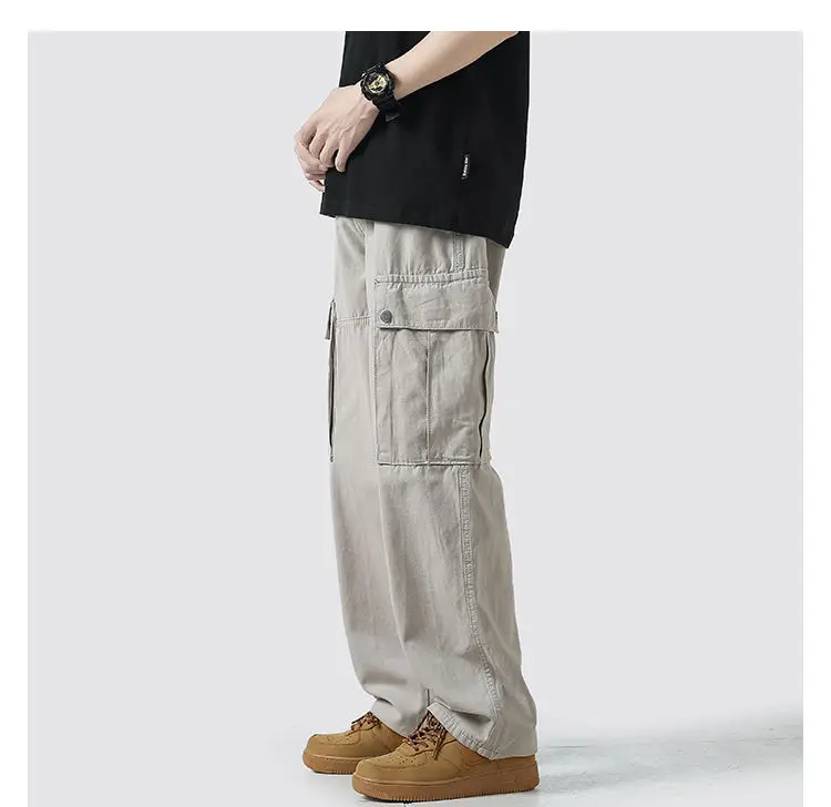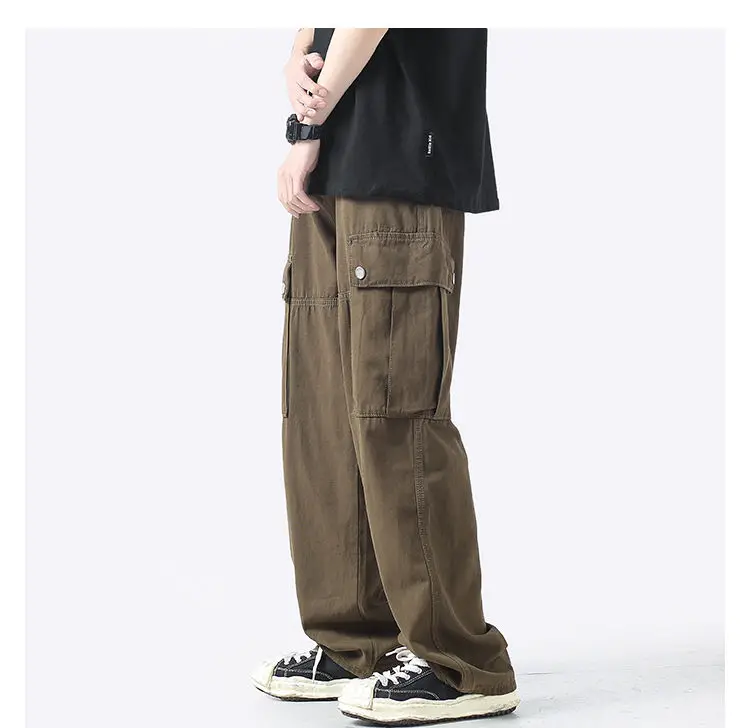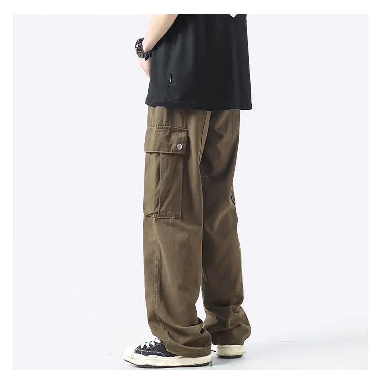 Wiaofellas Cotton Cargo Pants Men Fashion Casual Pocket Casual Pants Men Streetwear Wild Loose Hip-hop Straight Pants Mens Trousers M-2XL