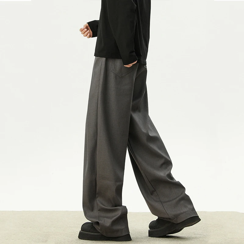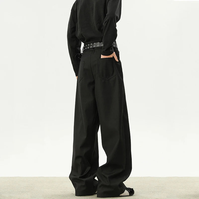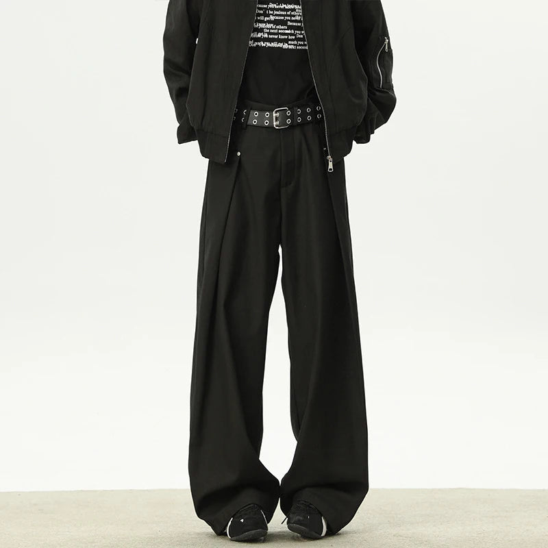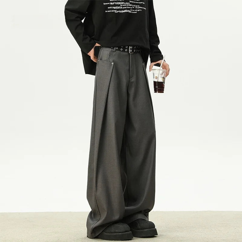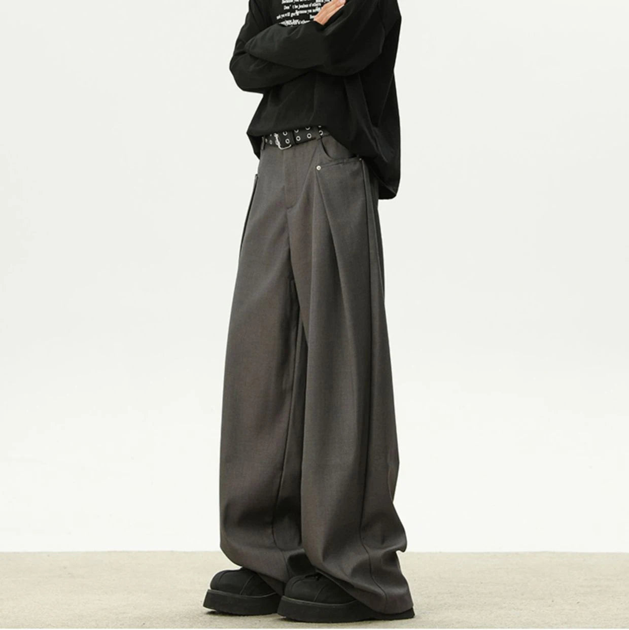 WIAOFELLAS - Deconstruction Design Pleated Wide Leg Trousers Men American Vintage Drape Suit Pants Streetwear Fall Loose Leisure Pants