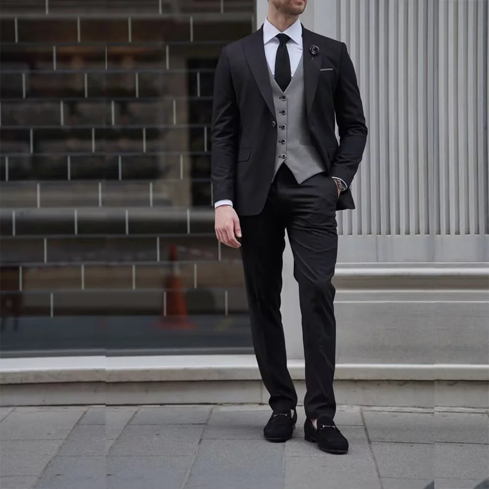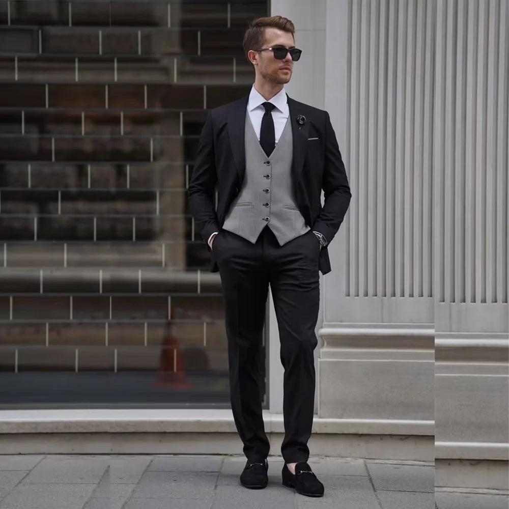 WIAOFELLAS - Elegant Black Men Suits for Wedding 2025 Luxury Single Breasted Peak Lapel Male Clothing High Quality 3 Piece Jacket Pants Vest