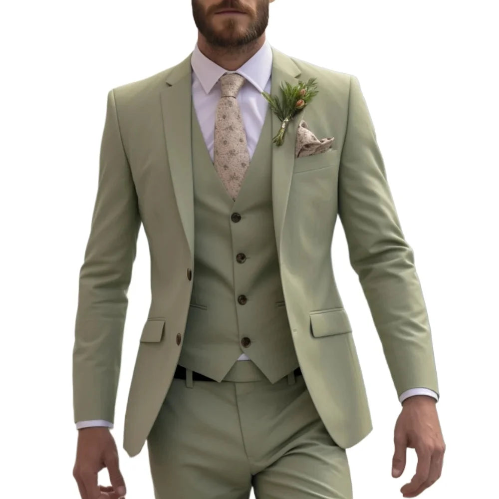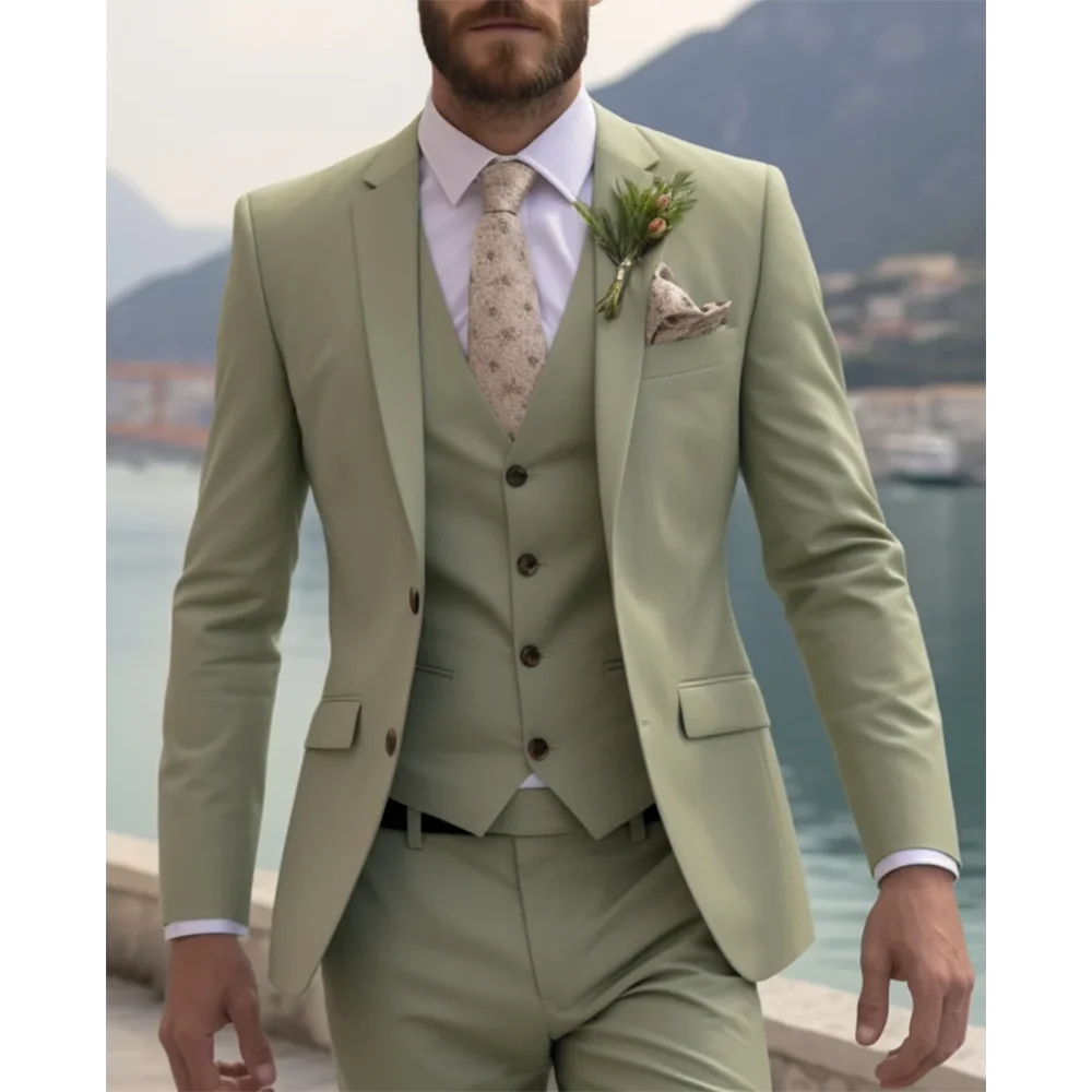 WIAOFELLAS - Elegant Green 3 Piece Suit Blazer Pants Vest Men's Notch Lapel Premium Business Formal Wear Banquet Coustome Suits
