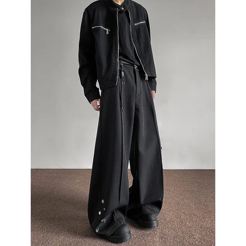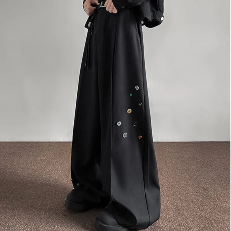 WIAOFELLAS  -  Fashion Black Casual Pants Men Buttons Design High Street Hip-hop Wide Leg Mopping Trousers All-match Casual Korean Style