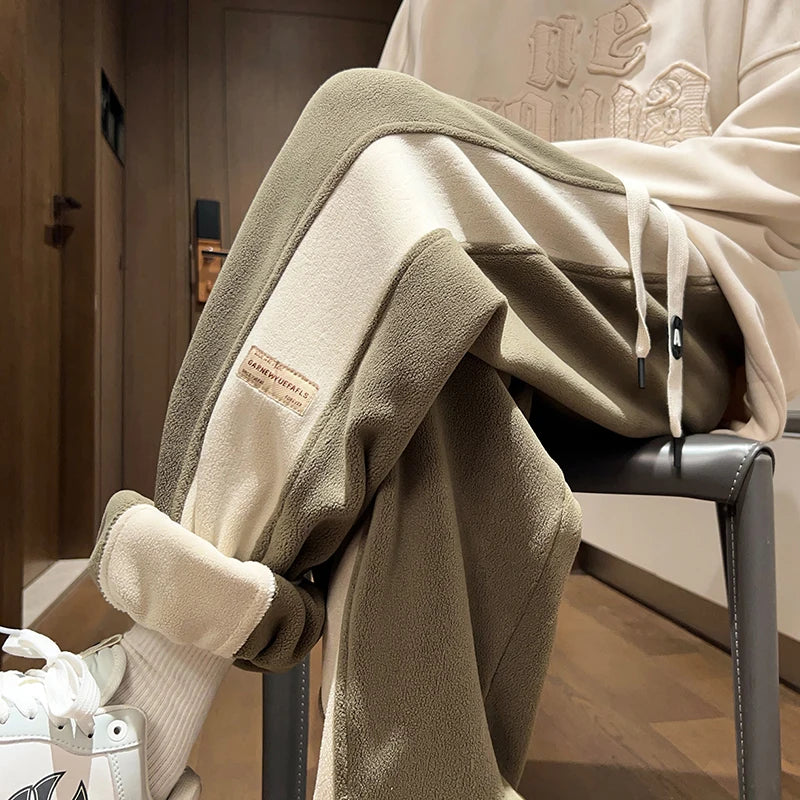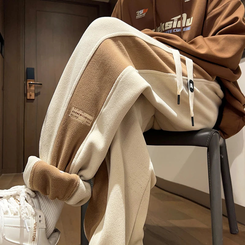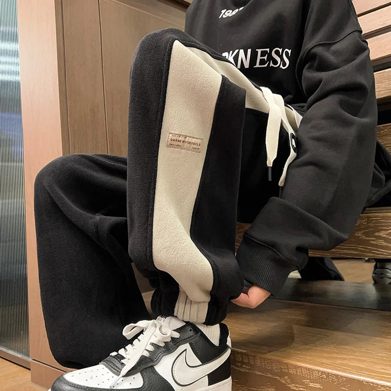 WIAOFELLAS - Fashion Retro Thickened Warm Men Casual Pants Winter Streetwear Hip Hop Patchwork Striped Straight Leg Male Sweatpants Trousers