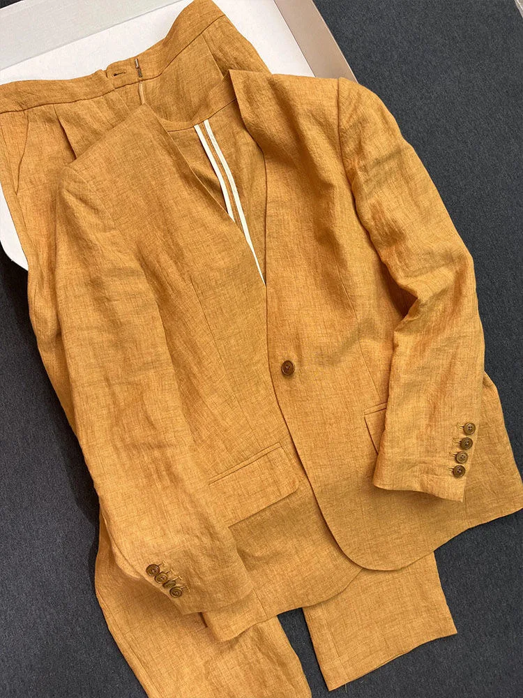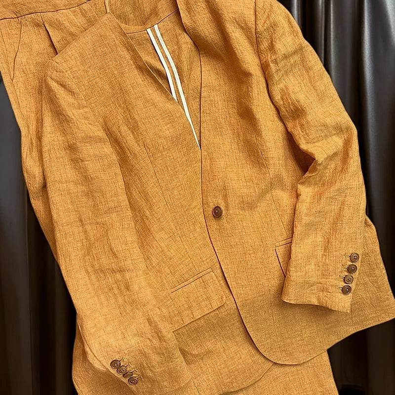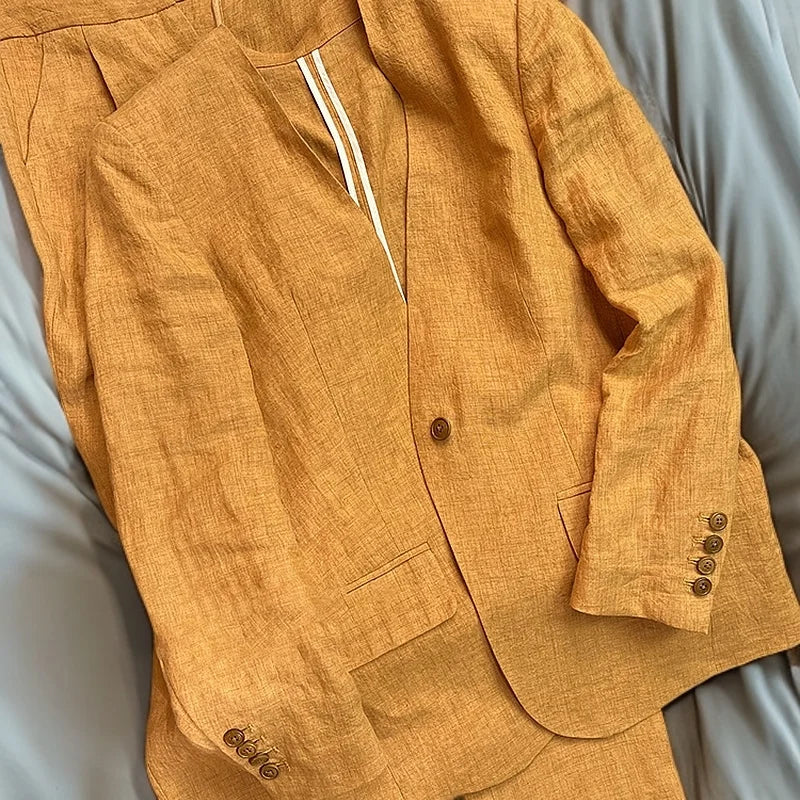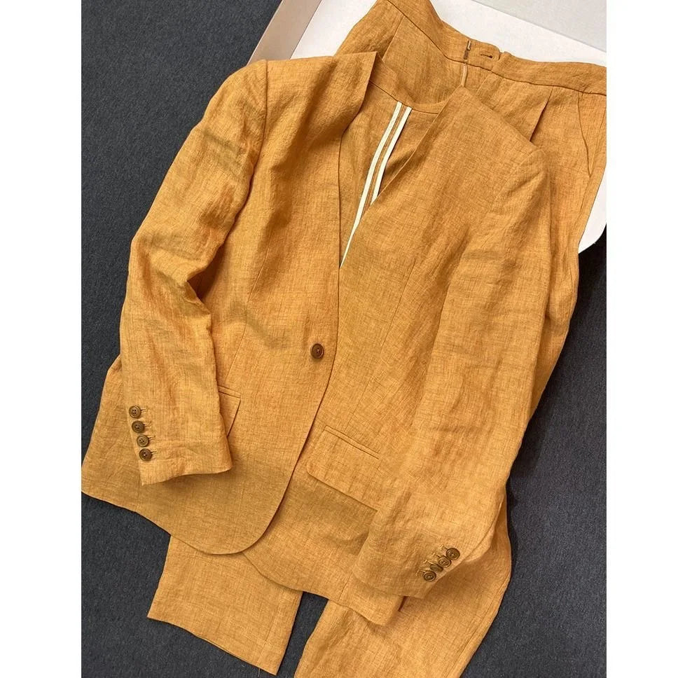 WIAOFELLAS - Fashion Vintage Thin Suit Outfits Men Women Long Sleeve V-neck Tops Coat And Pants Two Piece Set Relaxing Loose Suits Streetwear