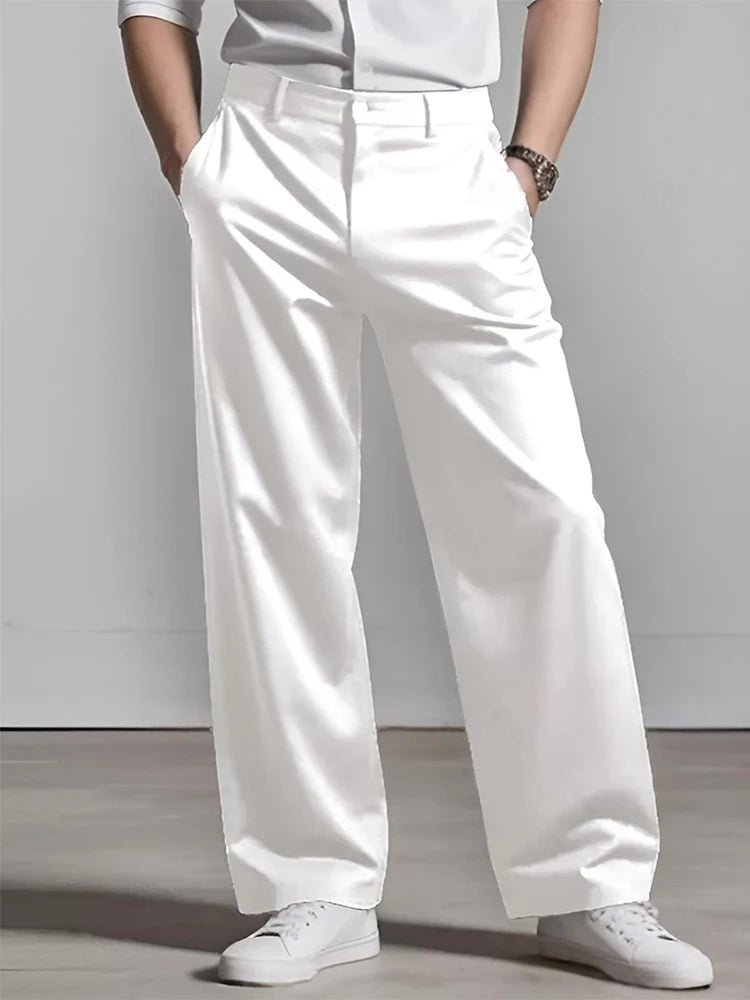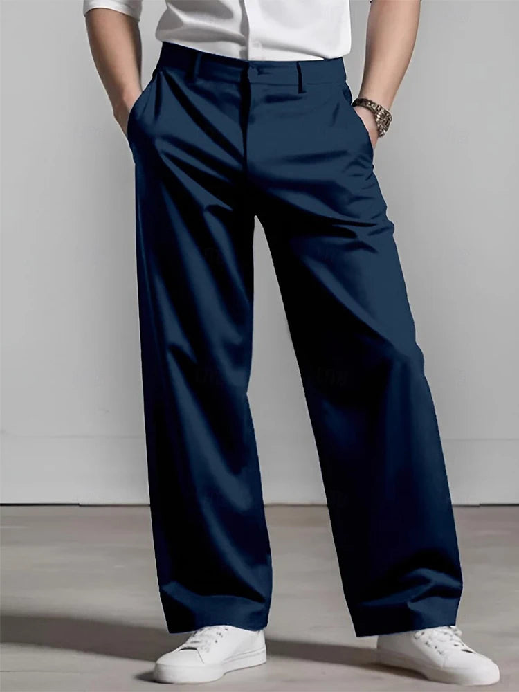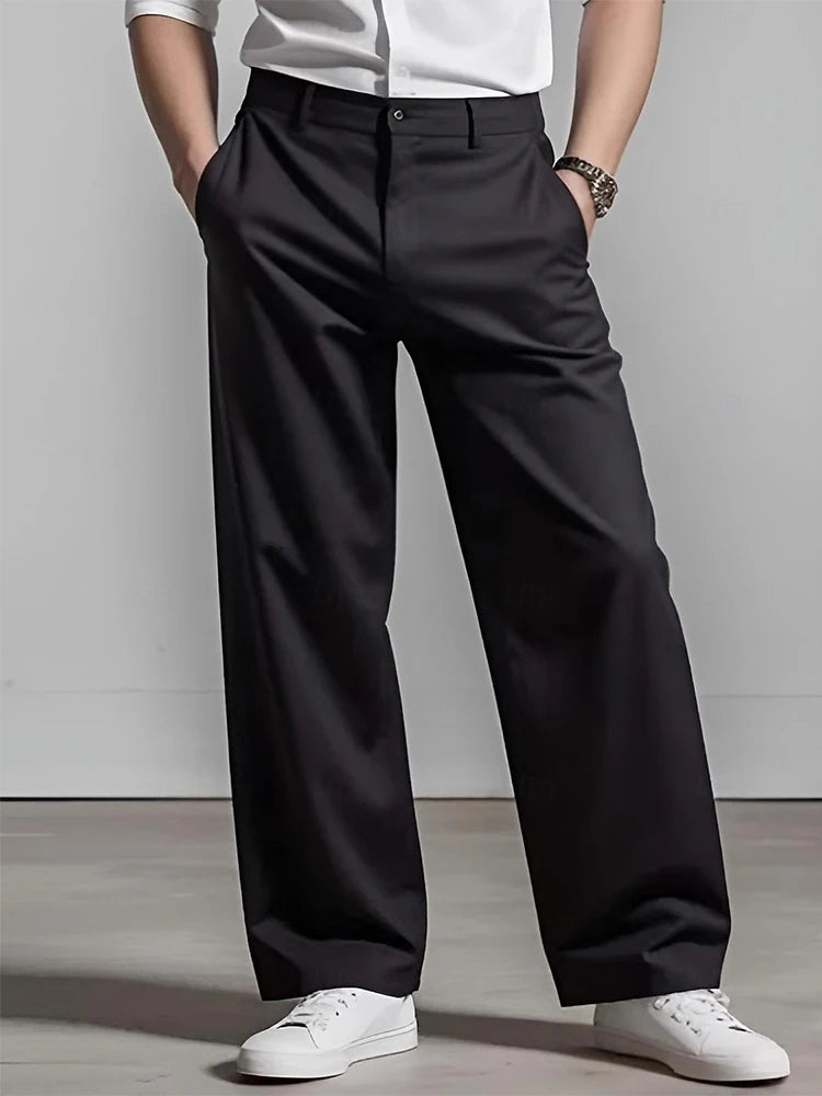 WIAOFELLAS - Fashionable Pleated Mens Loose Straight Pants Spring Summer Daily Casual Solid Color Suit Trousers For Men Leisure Trousers