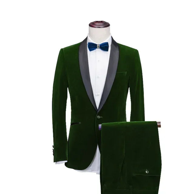 Wiaofellas  -  Formal Men's Suits Slim Fit Groom Tuxedo For Wedding Prom 2 Pcs Shawl Collar Male Suit Velvet Smoking Jacket (Blazer+Pants)