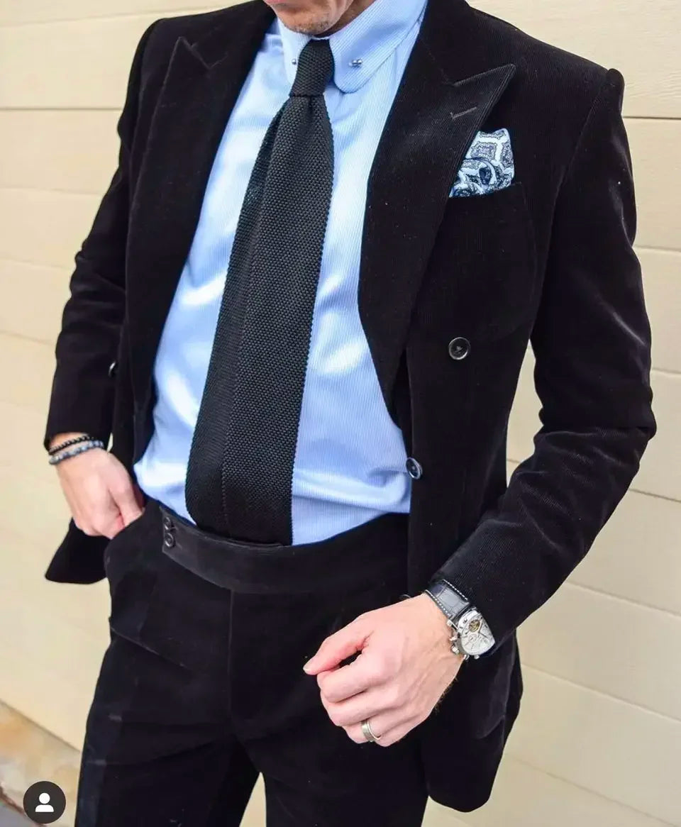 Wiaofellas  -  Formal Wedding Men Suits Slim Fit Double Breasted 2 Pcs Groom Tuxedo For Prom Peak Lapel Smoking Velvet Jacket With Pants
