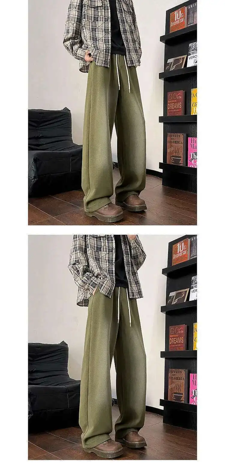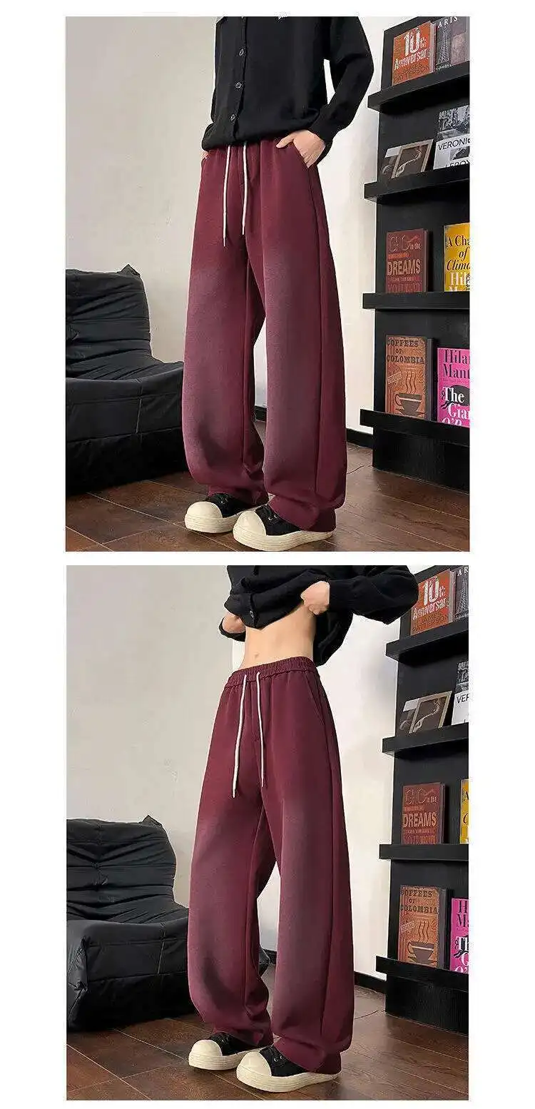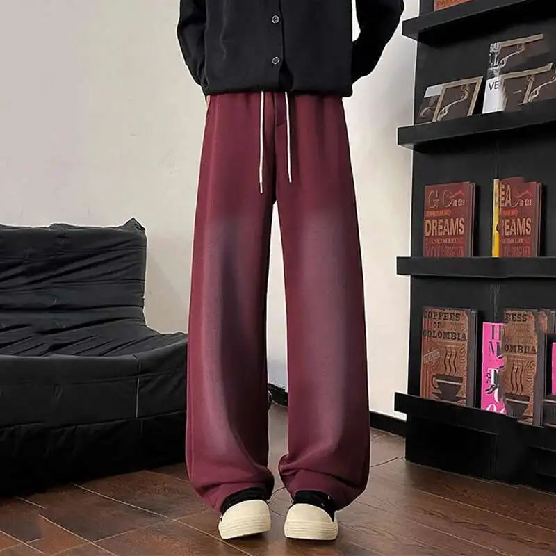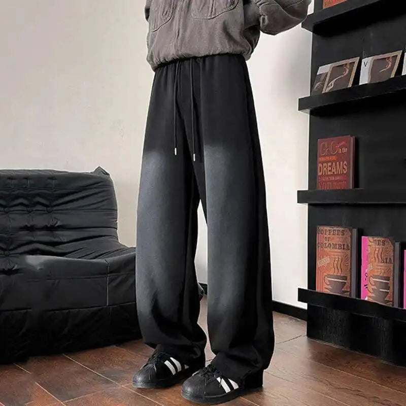 WIAOFELLAS - Gradient Color Men's Sweatpants Casual Drawstring Loose Straight Korean Style Wide Leg Elastic Waist Male Bottom
