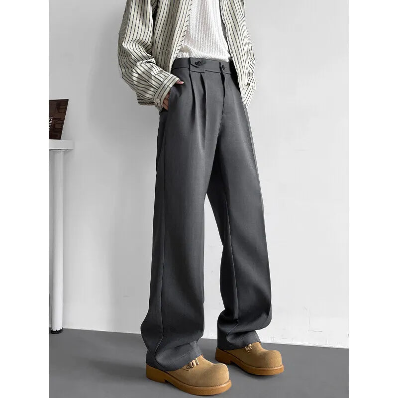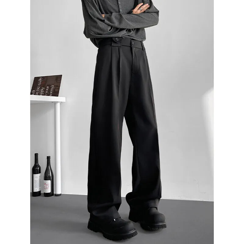 WIAOFELLAS - Grey Black Suit Pants Men Fashion Society Mens Dress Pants Korean Loose Casual Straight Pants Mens Office Formal Trousers 4XL
