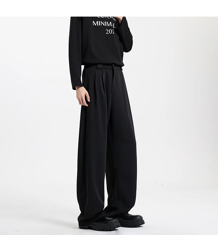 WIAOFELLAS - Grey Black Suit Pants Men Fashion Society Mens Dress Pants Korean Loose Casual Wide Leg Pants Mens Office Formal Trousers M-3XL