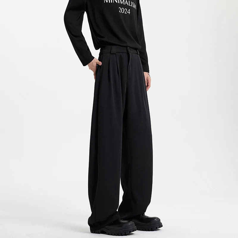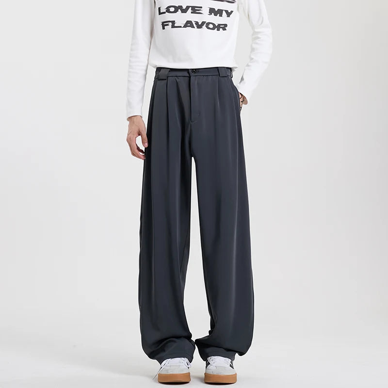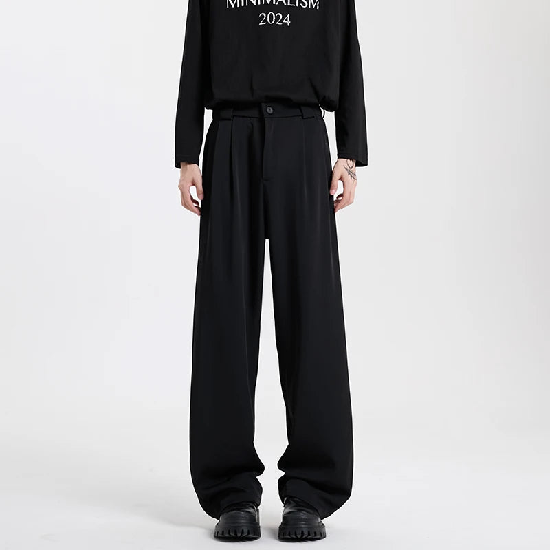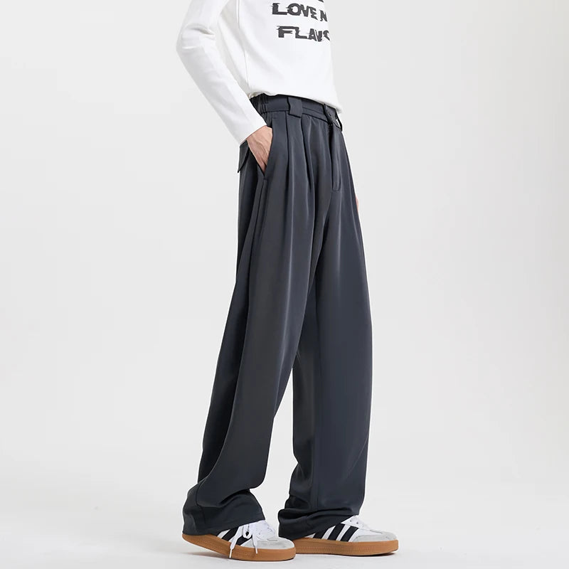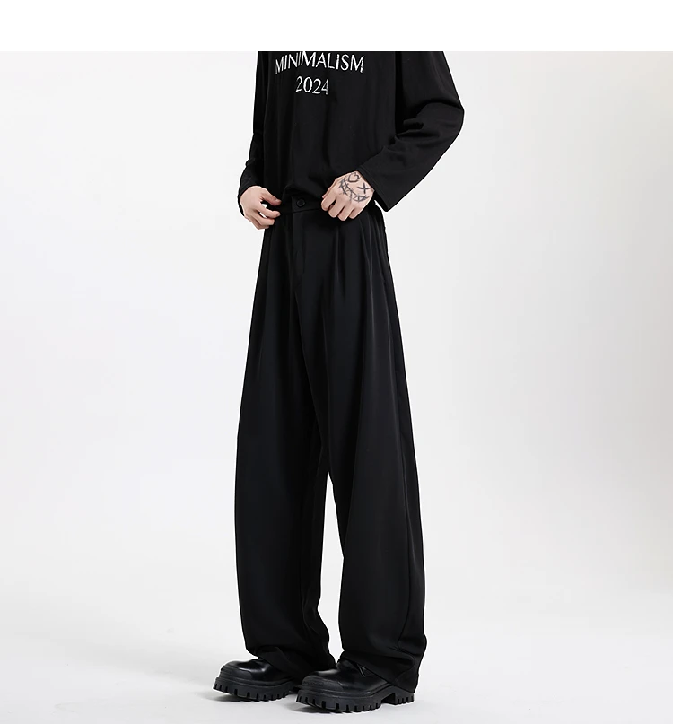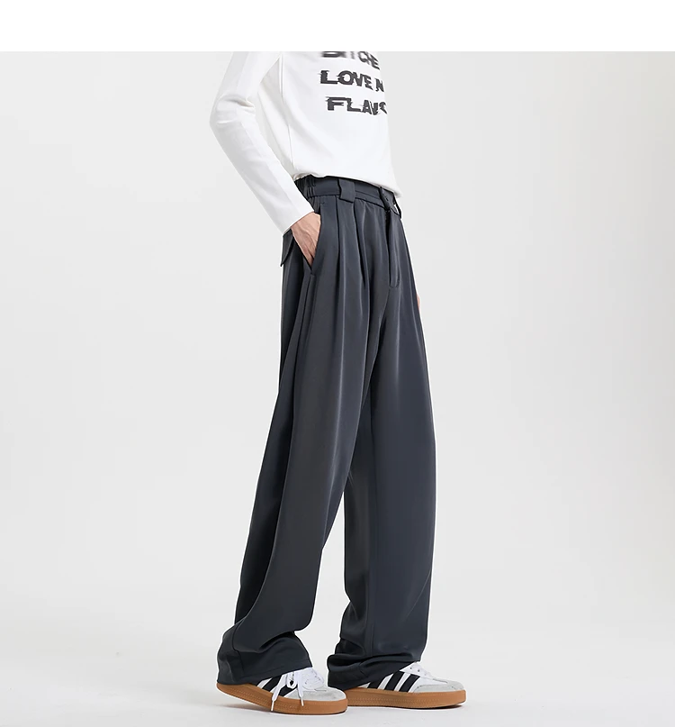 WIAOFELLAS  -  Grey Black Suit Pants Men Fashion Society Mens Dress Pants Korean Loose Casual Wide Leg Pants Mens Office Formal Trousers M-3XL
