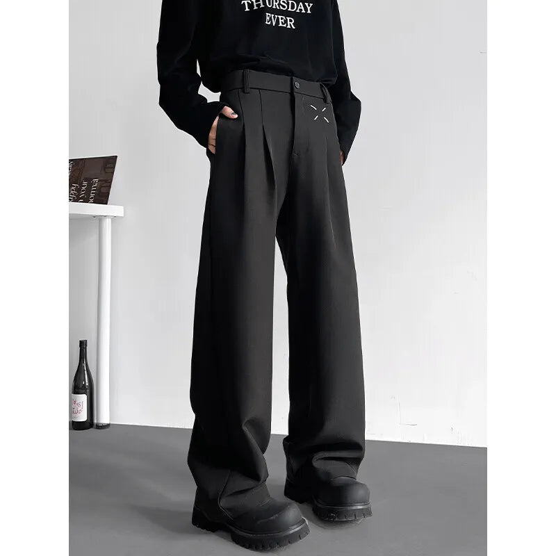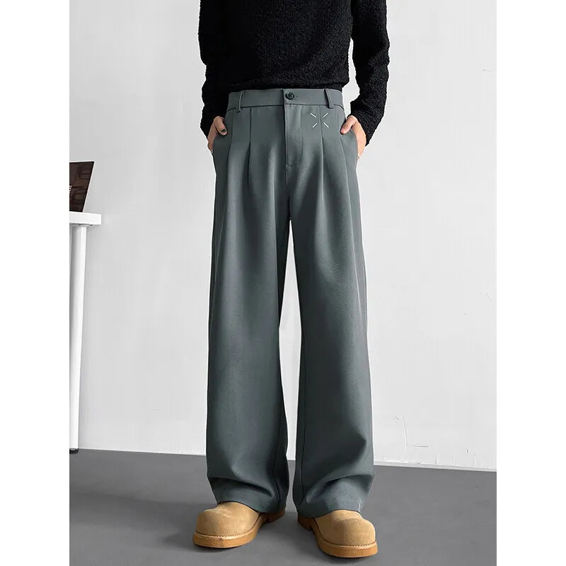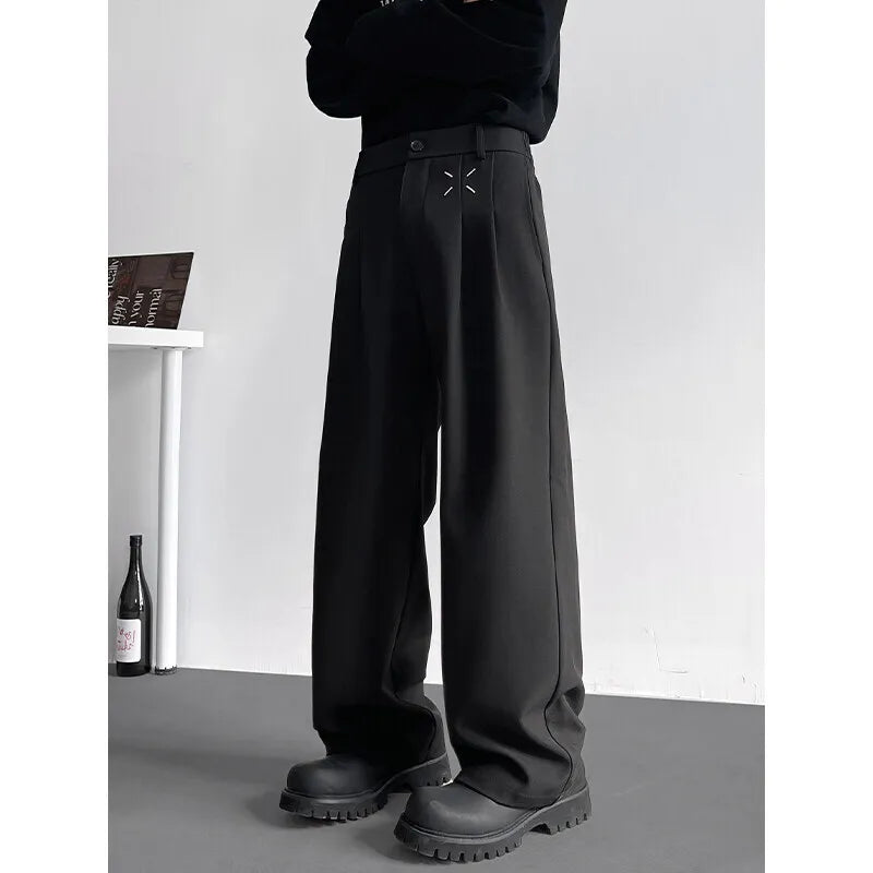 WIAOFELLAS  -  Grey Black Suit Pants Men Fashion Society Mens Dress Pants Korean Loose Straight Pants Mens Office Formal Trousers Plus Size