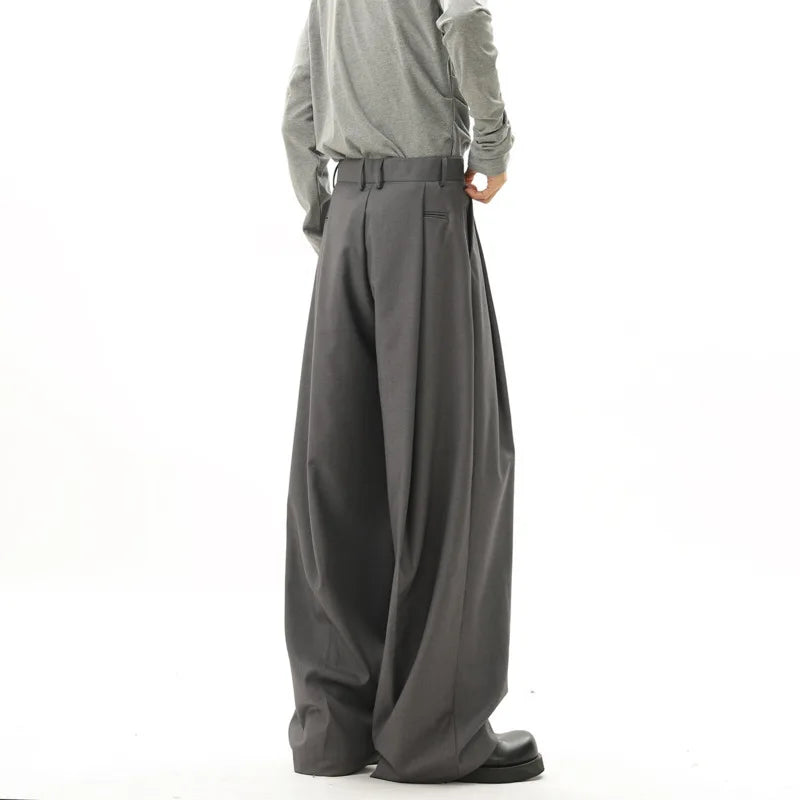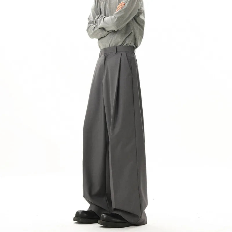 WIAOFELLAS  -  Grey Black Suit Pants Men Oversized Society Mens Dress Pants Korean Casual Loose Wide Leg Pants Mens Office Formal Trousers