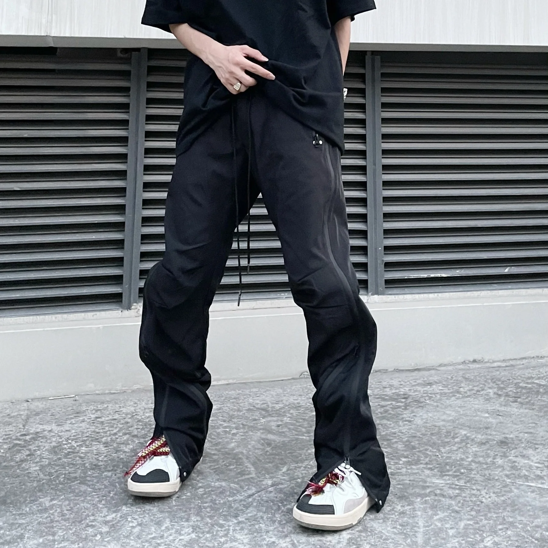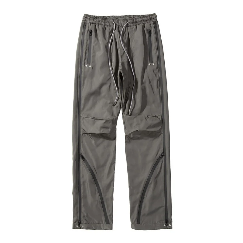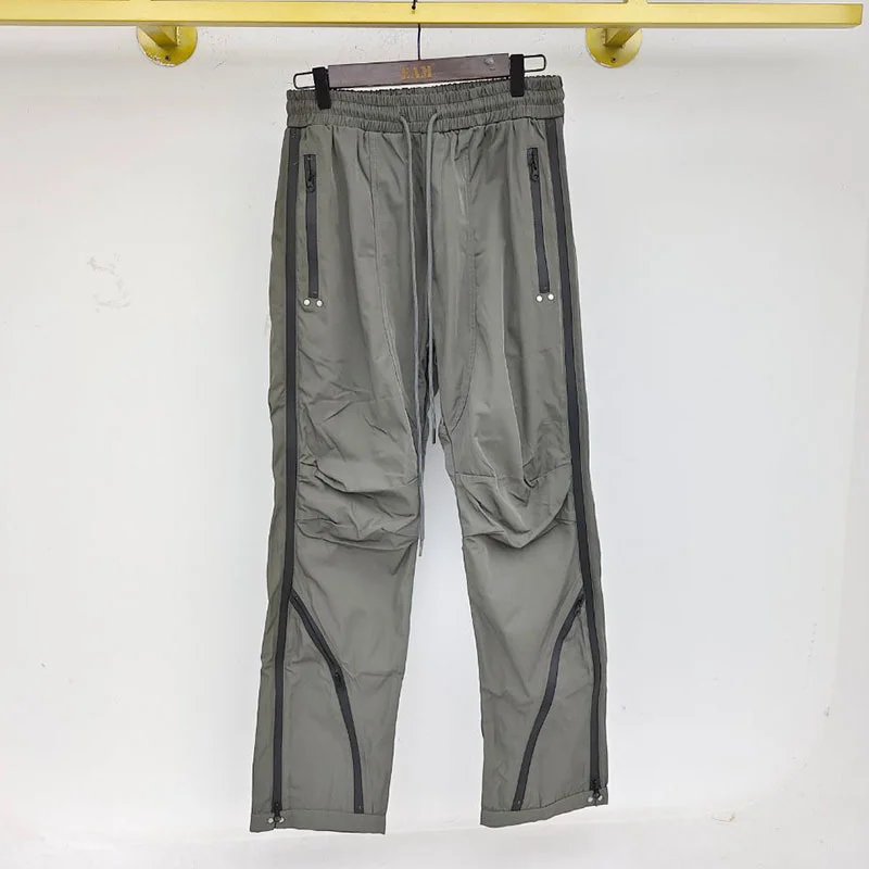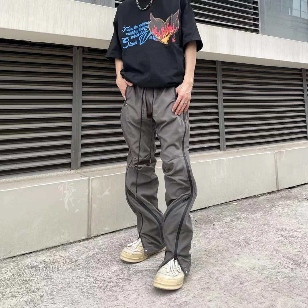 WIAOFELLAS - High Men's Street Splicing Multi Zipper Side Long Zipper Casual Pants New Elastic Wait Hip Hop Wide Straight Trousers