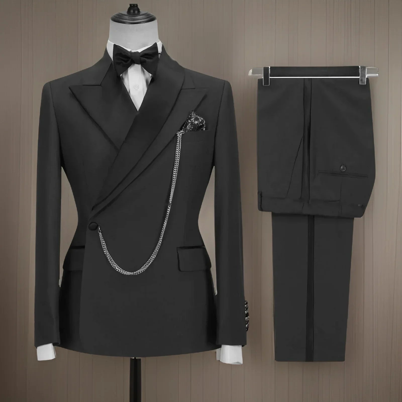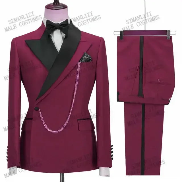 Wiaofellas - Italian Style Suits For Men Slim Fit Groom Tuxedo Wedding Double Breasted Formal Jacket With Pants Custom Male Fashion