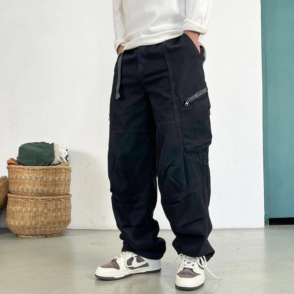 Wiaofellas - Japanese Streetwear High Quality Long Staple Cotton Twill Cargo Pants Men Harajuku Plus Size Casual Work Pants Baggy Trousers