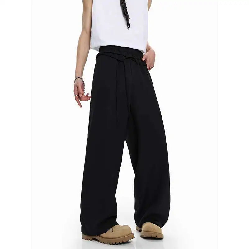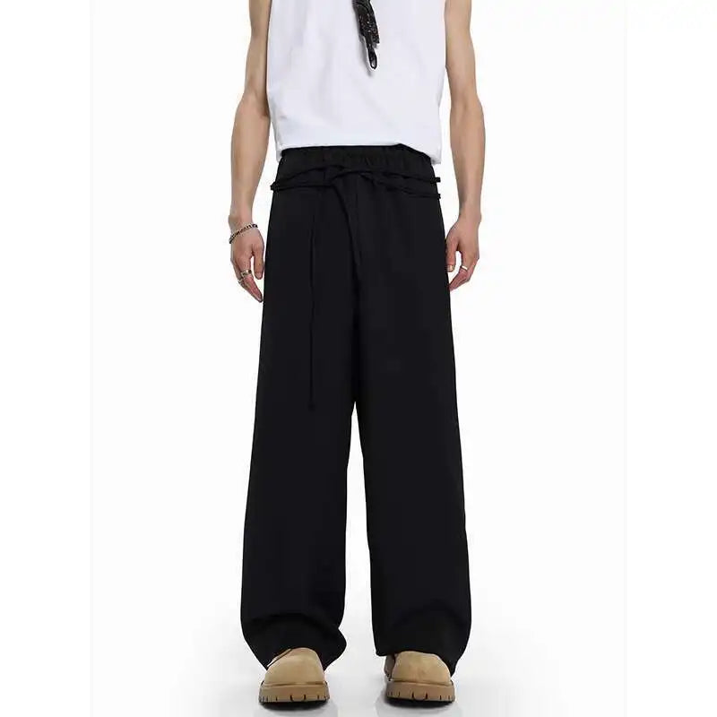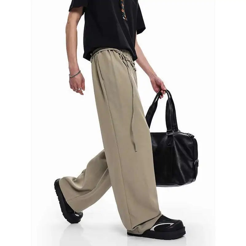 WIAOFELLAS - Khaki Black Suit Pants Men Fashion Society Mens Dress Pants Korean Loose Wide Leg Pants Mens Office Formal Trousers S-2XL