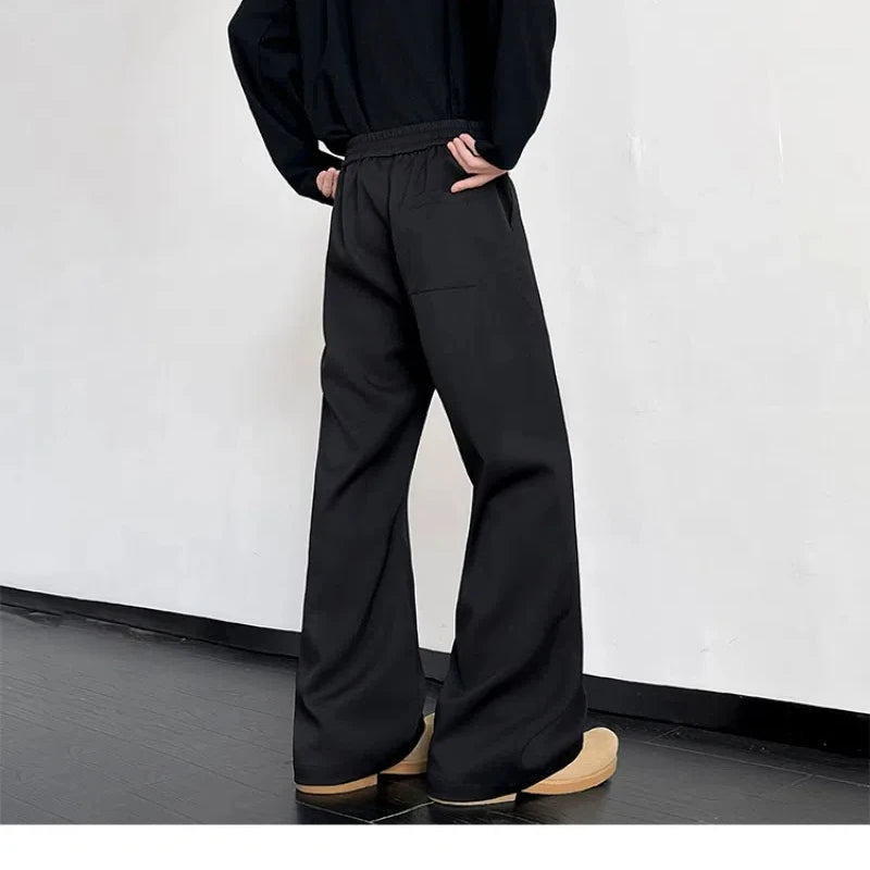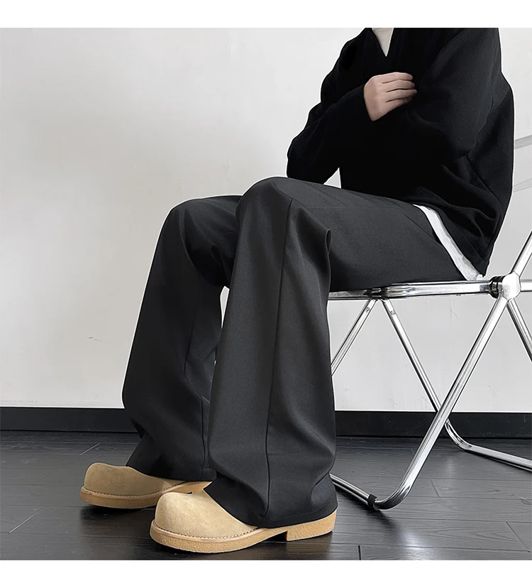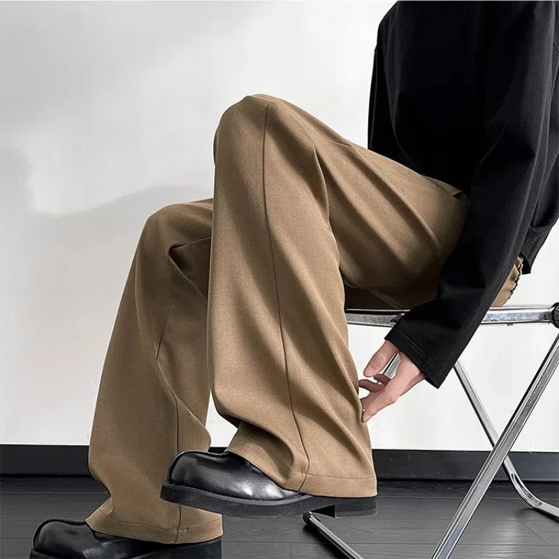 WIAOFELLAS - Korean Fashion Spring Autumn Cargo Trousers Straight Men's Clothing Solid Color Button High Waisted Pockets Cropped Pants