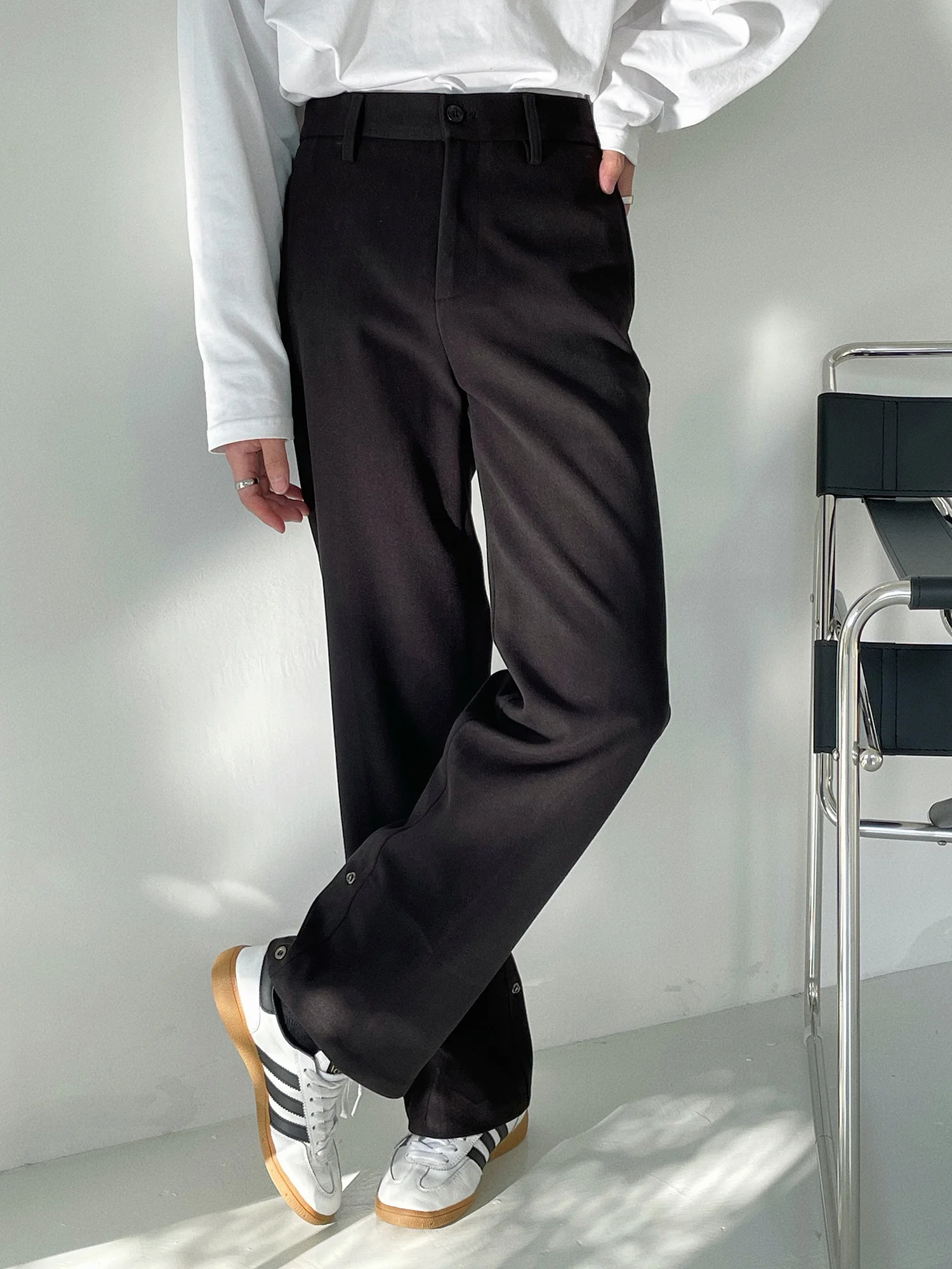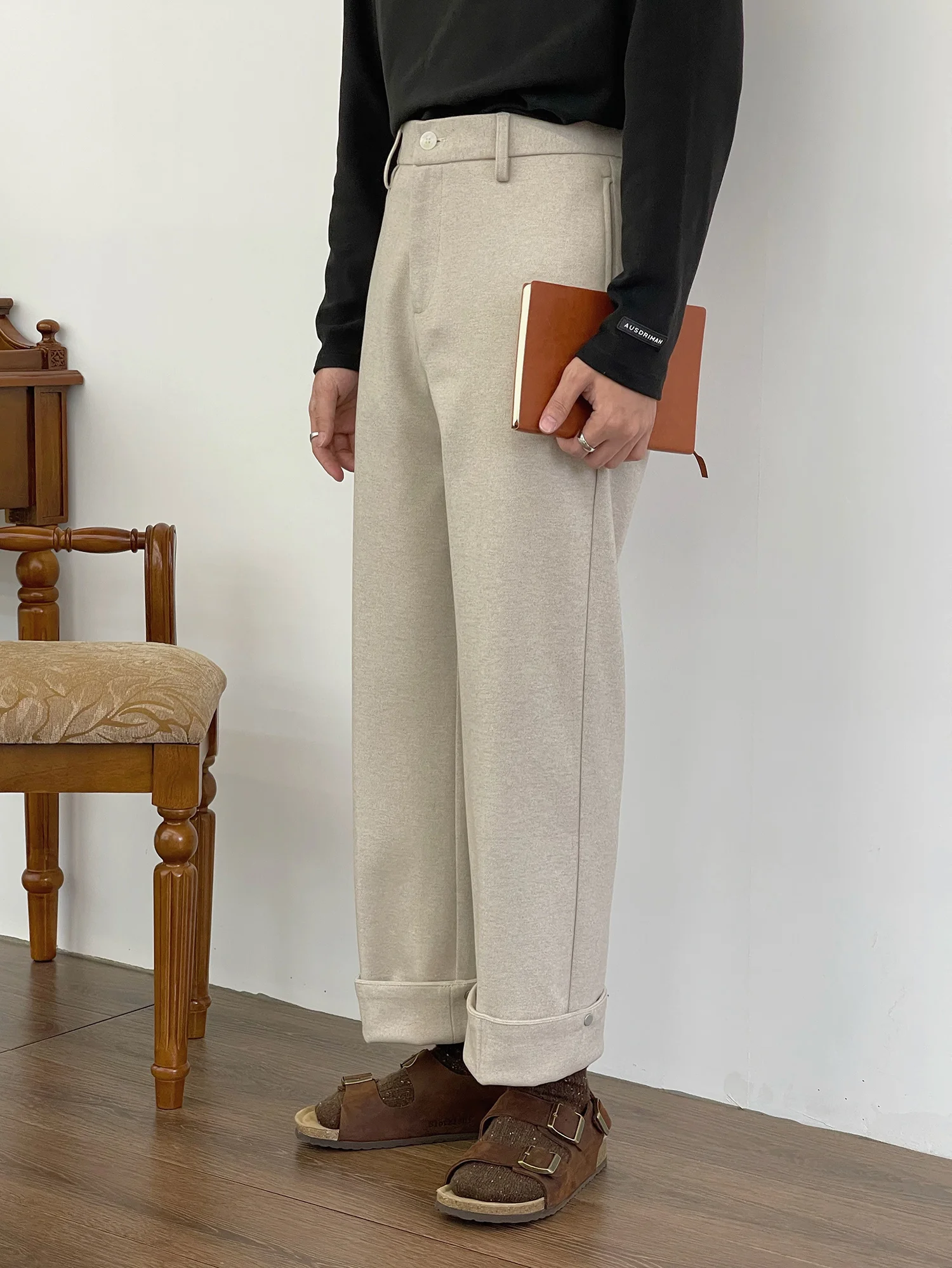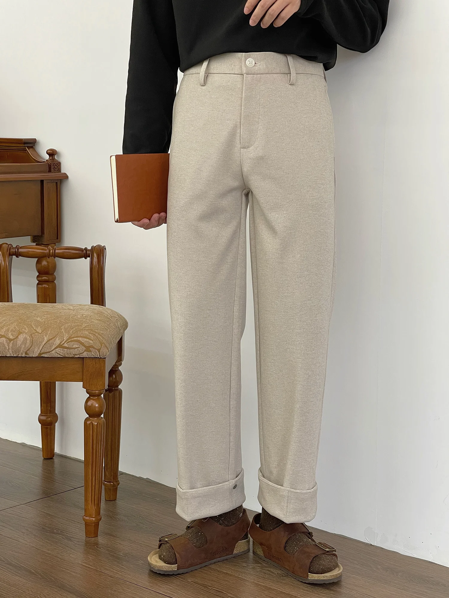 Wiaofellas Korean Fashion Trend Straight Woolen Casual Pants Men's Hidden Buttons Bottoms Design Thickned Straight Trousers 2A0528