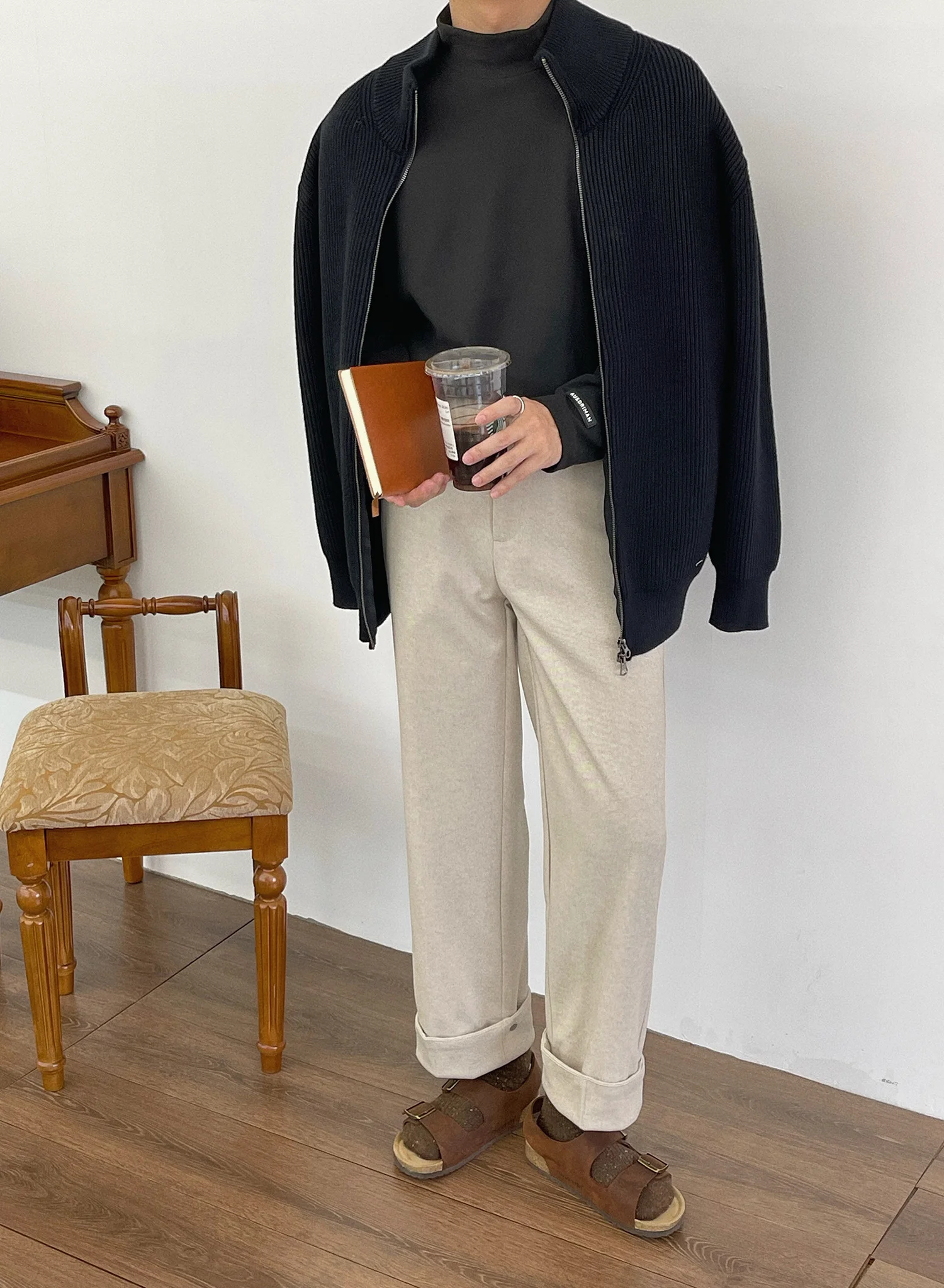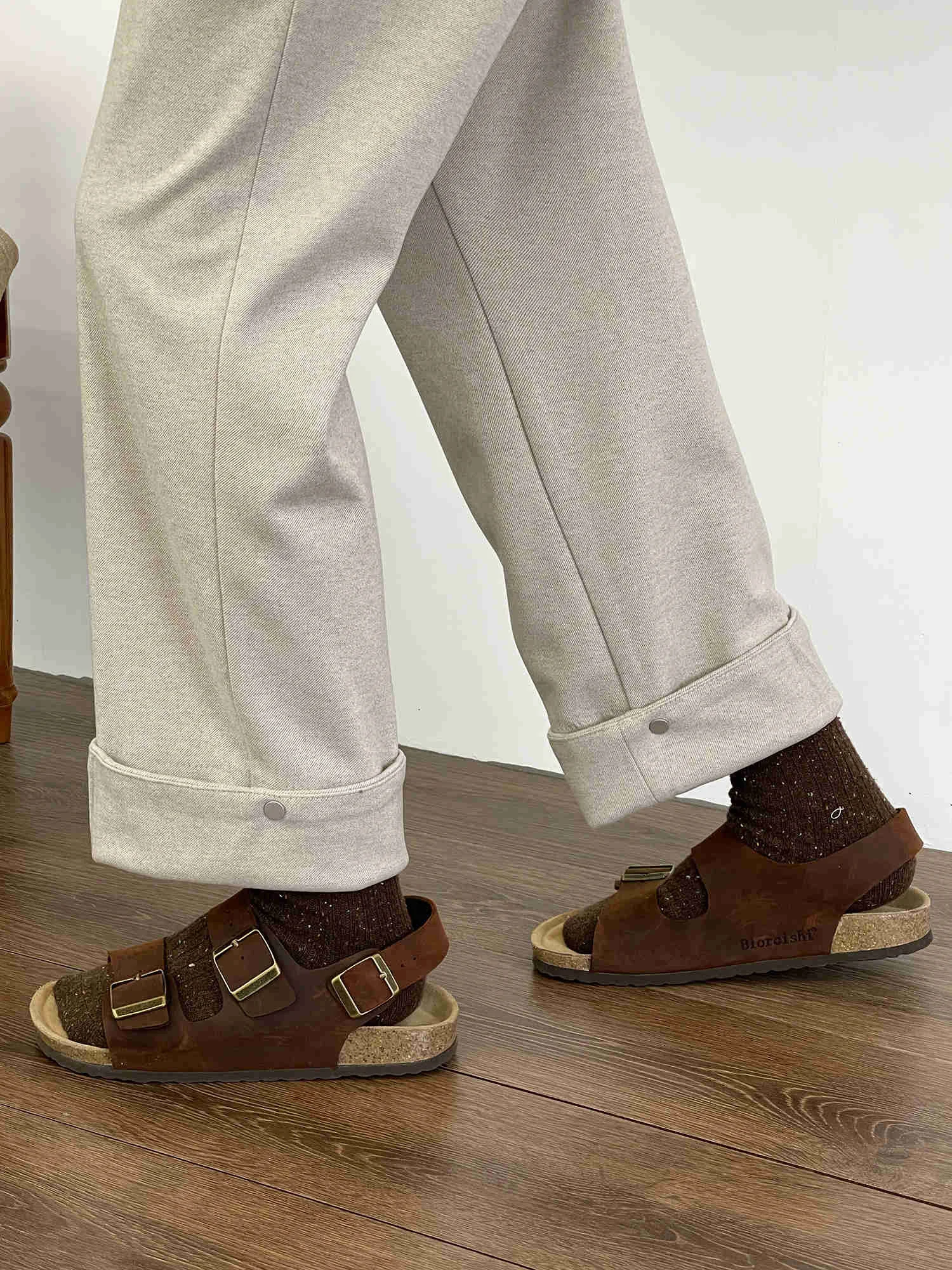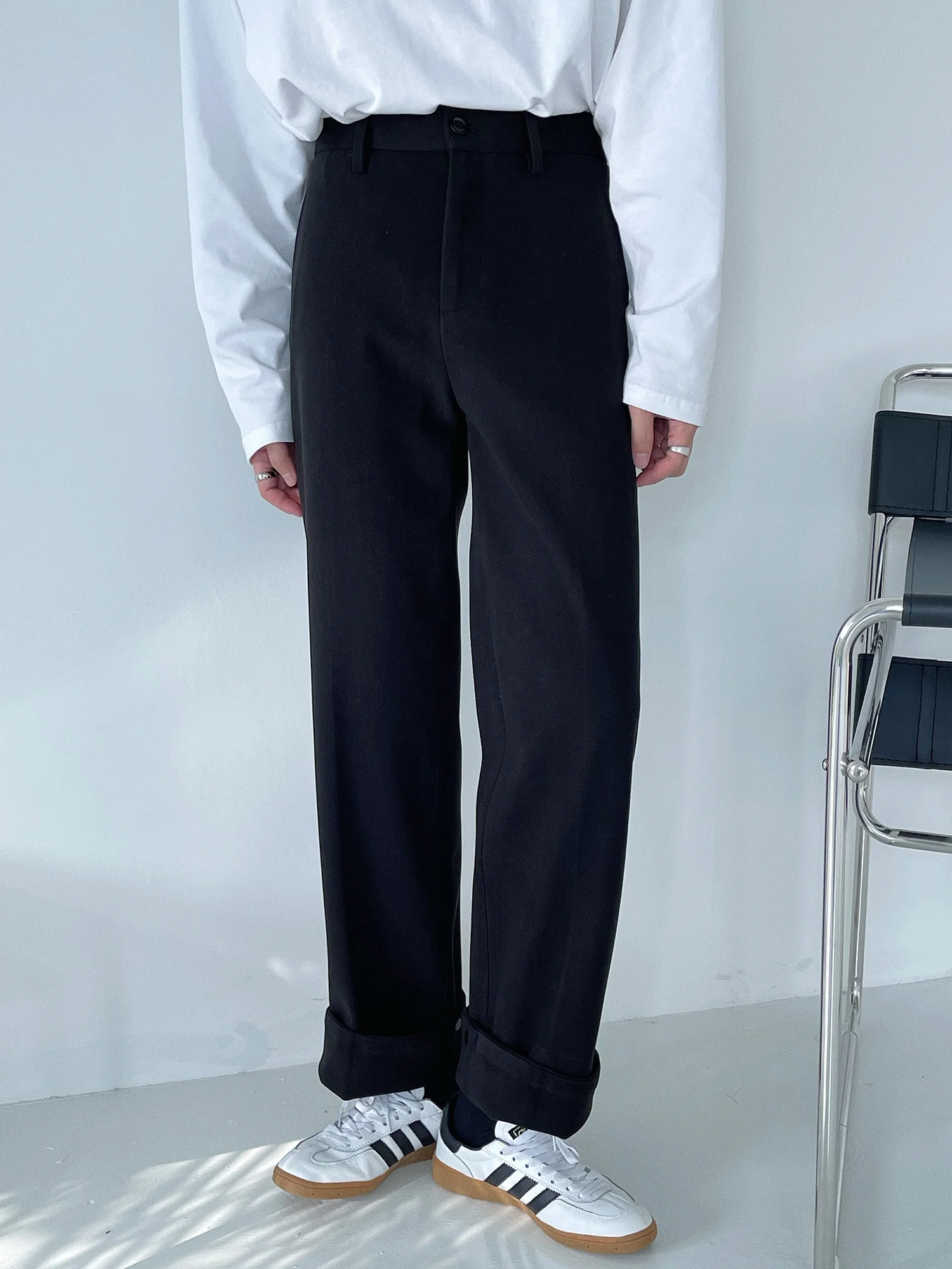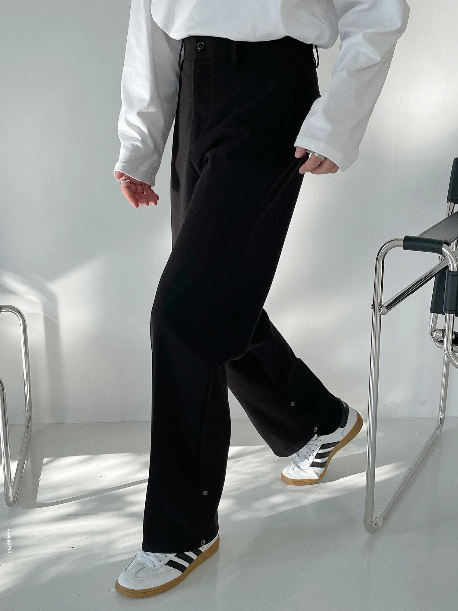Wiaofellas Korean Fashion Trend Straight Woolen Casual Pants Men's Hidden Buttons Bottoms Design Thickned Straight Trousers 2A0528
