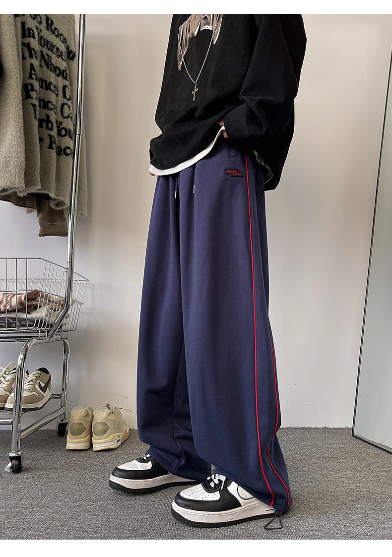 WIAOFELLAS - Korean Street Wide Leg Pants Men Trendy Side Clash Colour Sweatpants Loose Comfortable Jogging Trousers Male Casual Pants