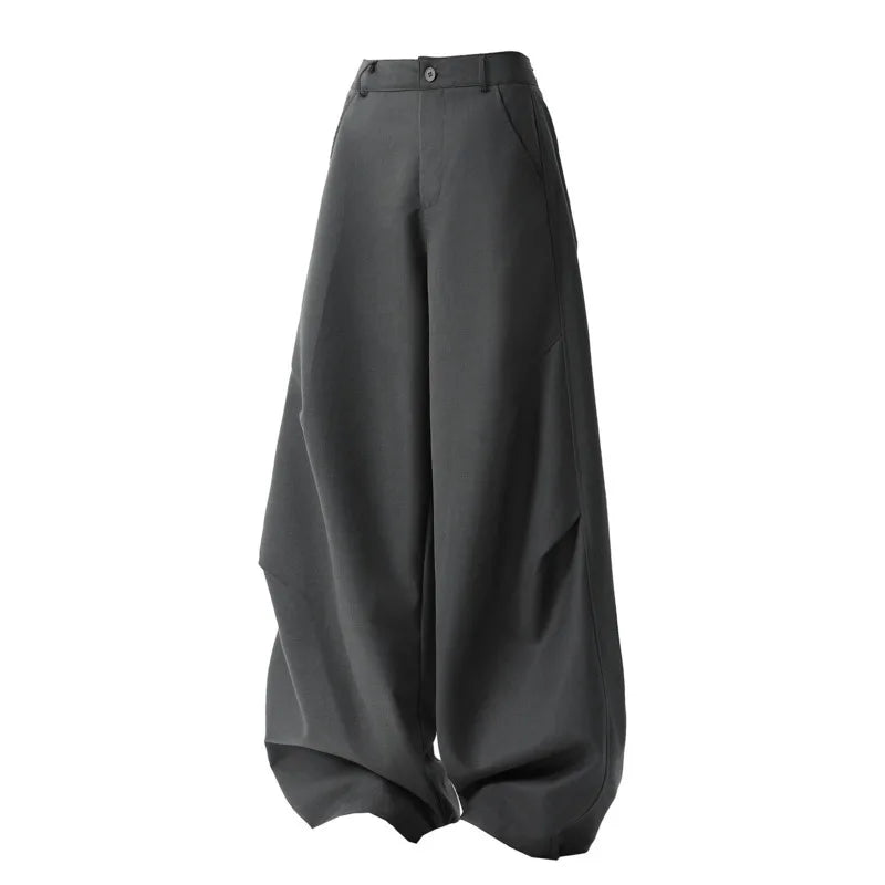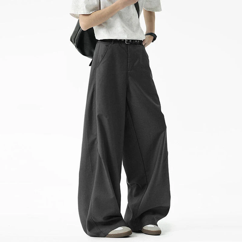WIAOFELLAS - Korean Style Men's Pants Pleated Design Solid Color Straight Loose Machete Trousers Wide Leg Casual Male Bottom New