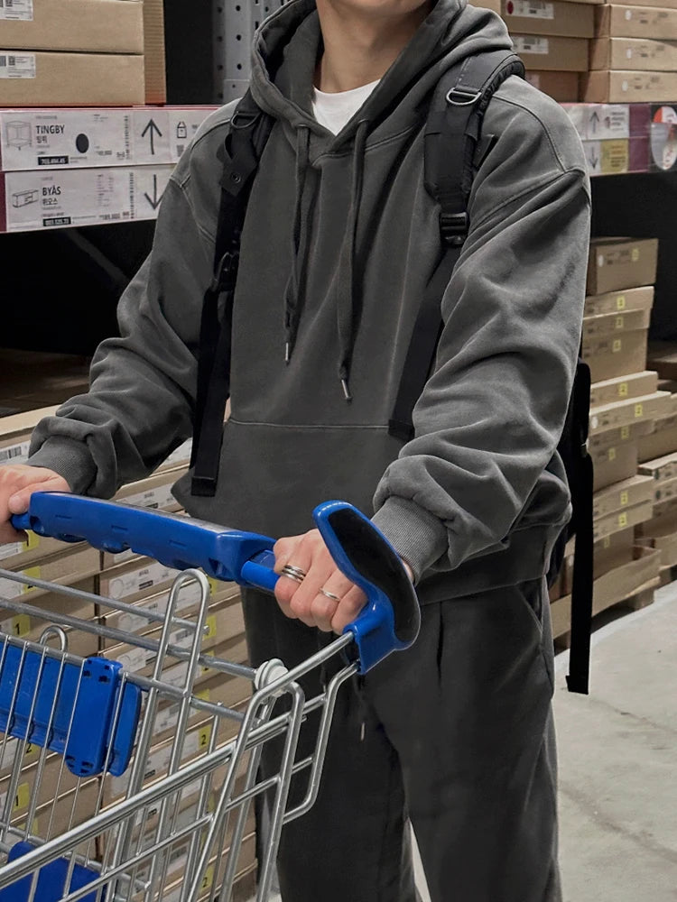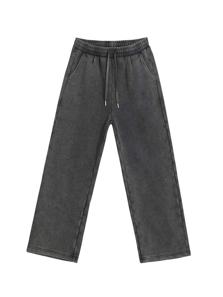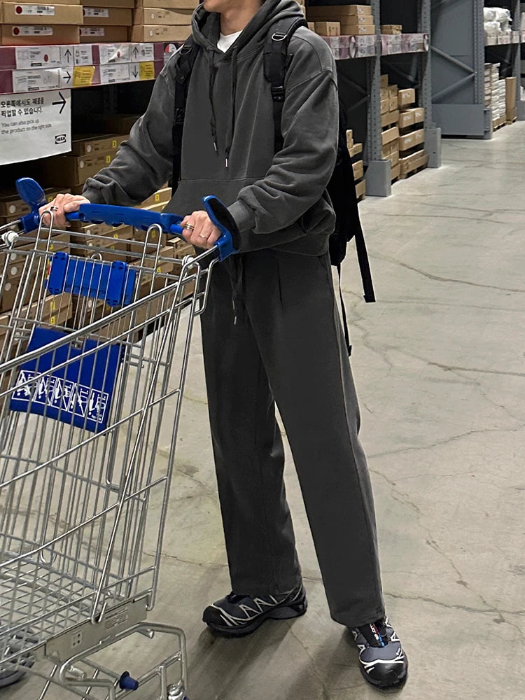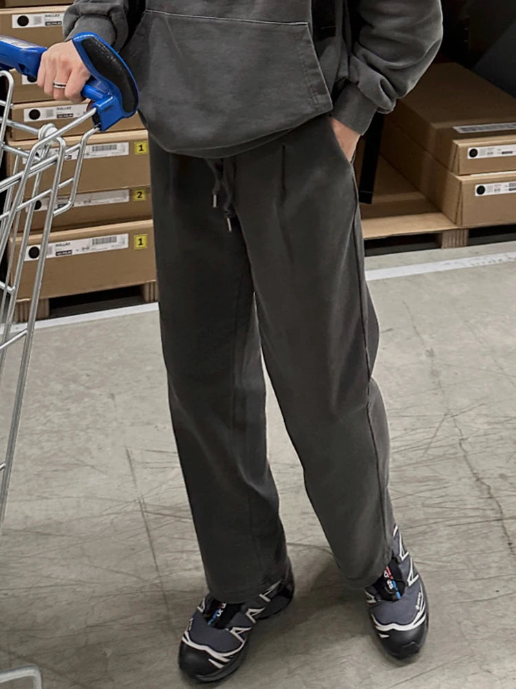 WIAOFELLAS - Korean Trendy Solid Color Men's Pants High Quality Wide Leg Trousers Loose Elastic Waist Straight Trousers Autumn