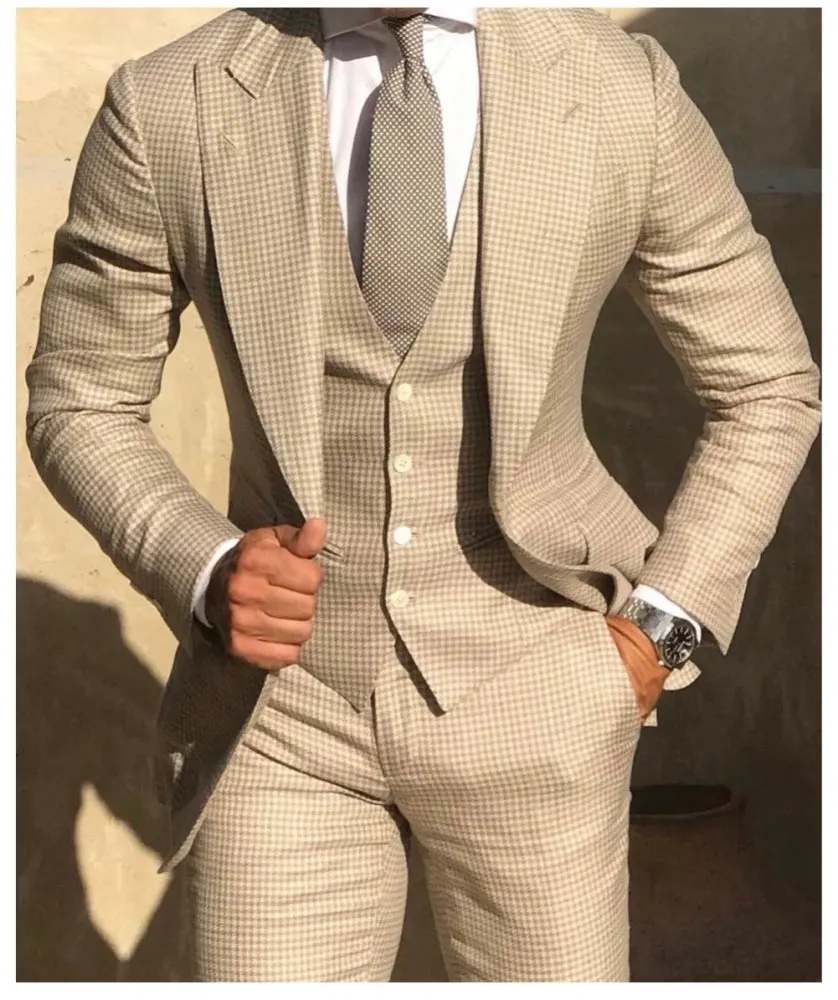 Wiaofellas - Latest Design Plaid Checkered Men's 3 Piece Set Wedding Party Fashion Gentleman Suits Summer Blazers(Jacket+Pants+Vest)