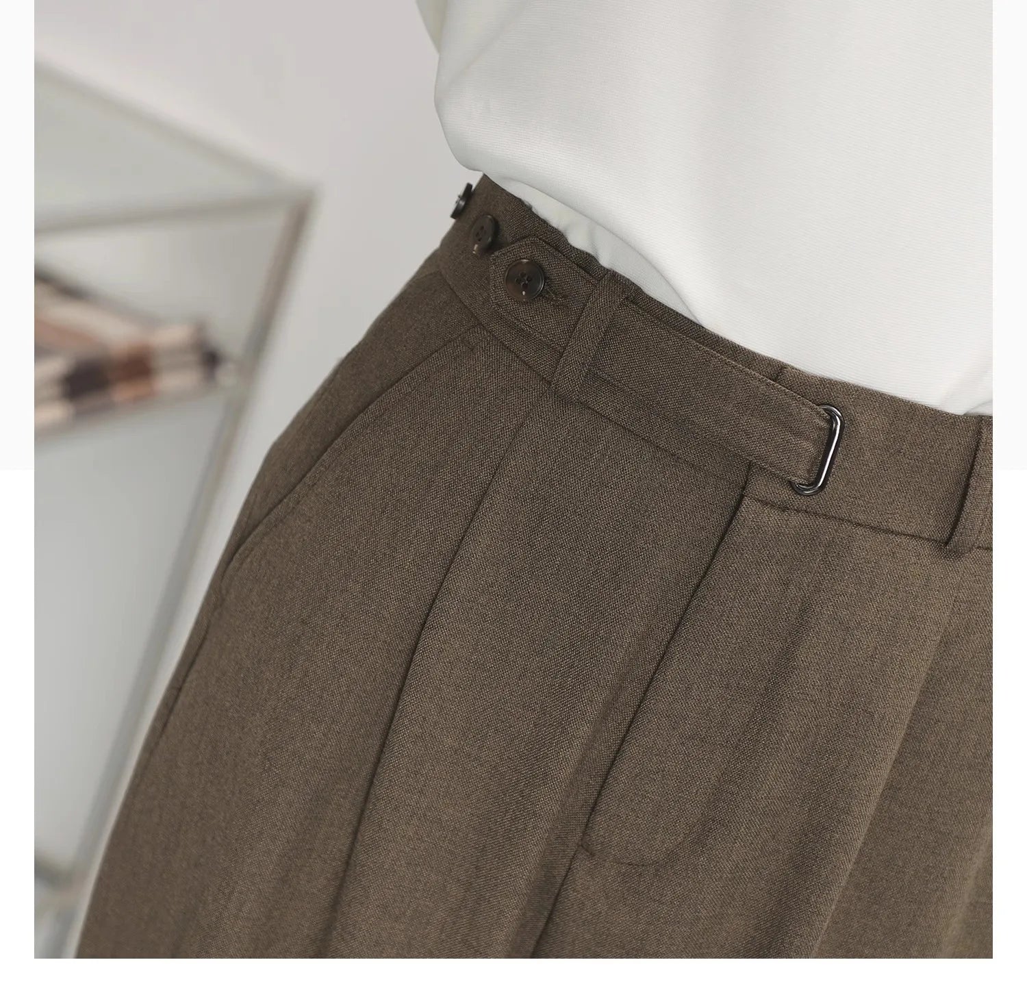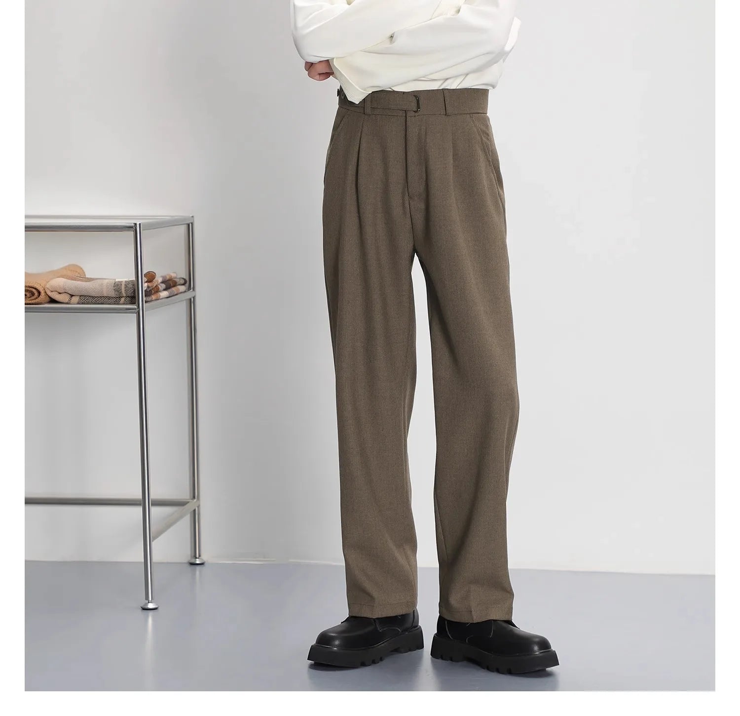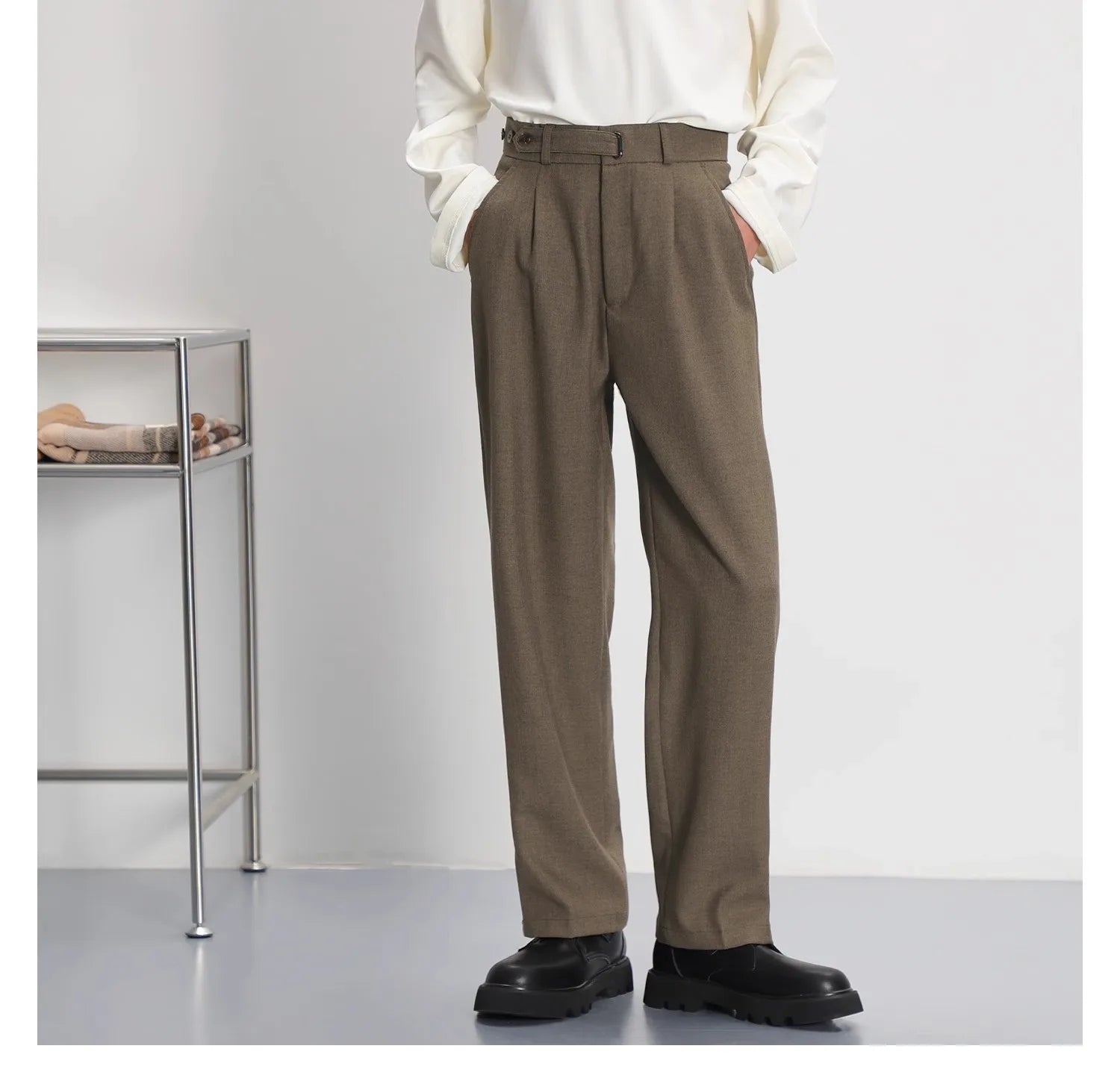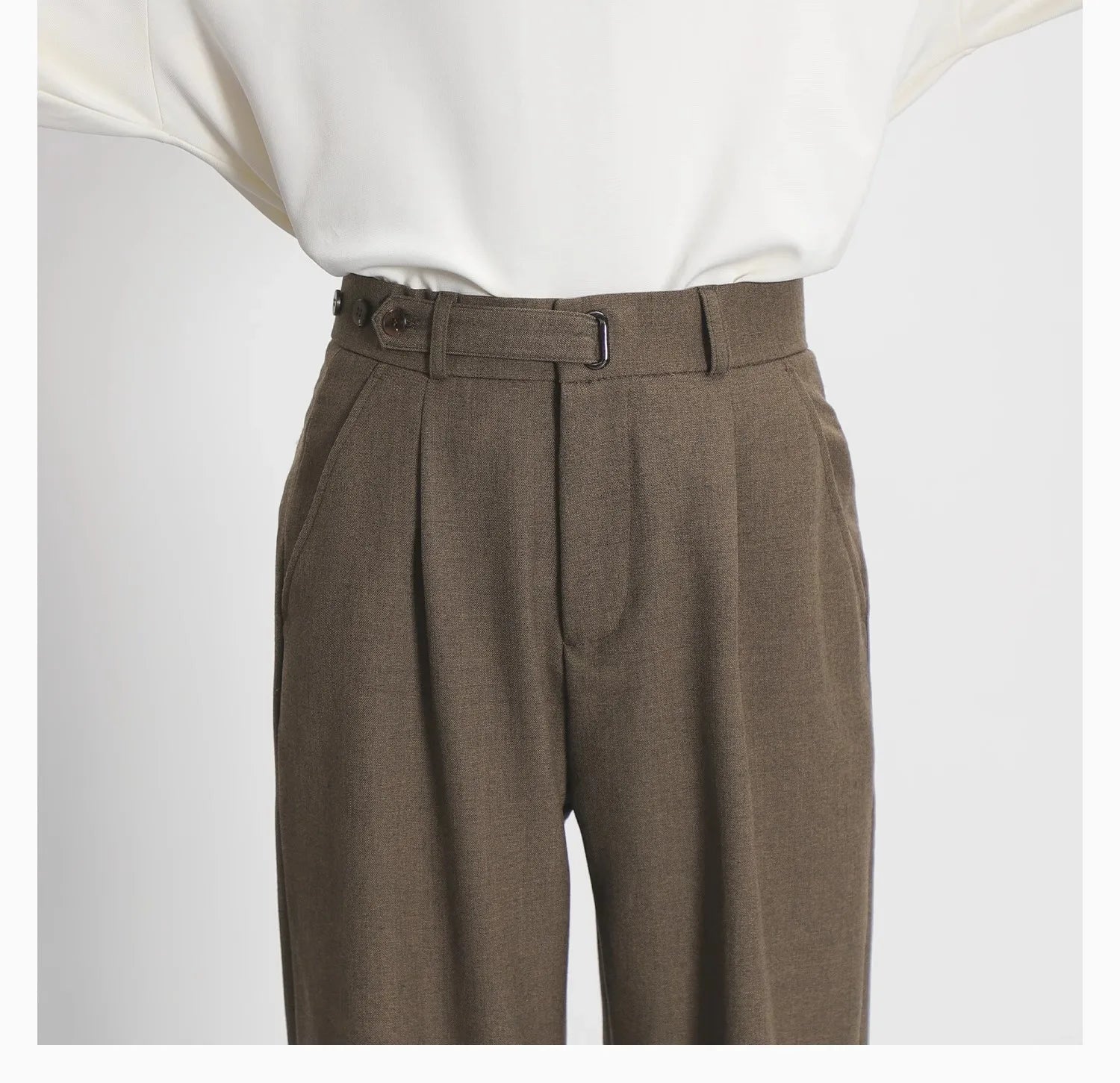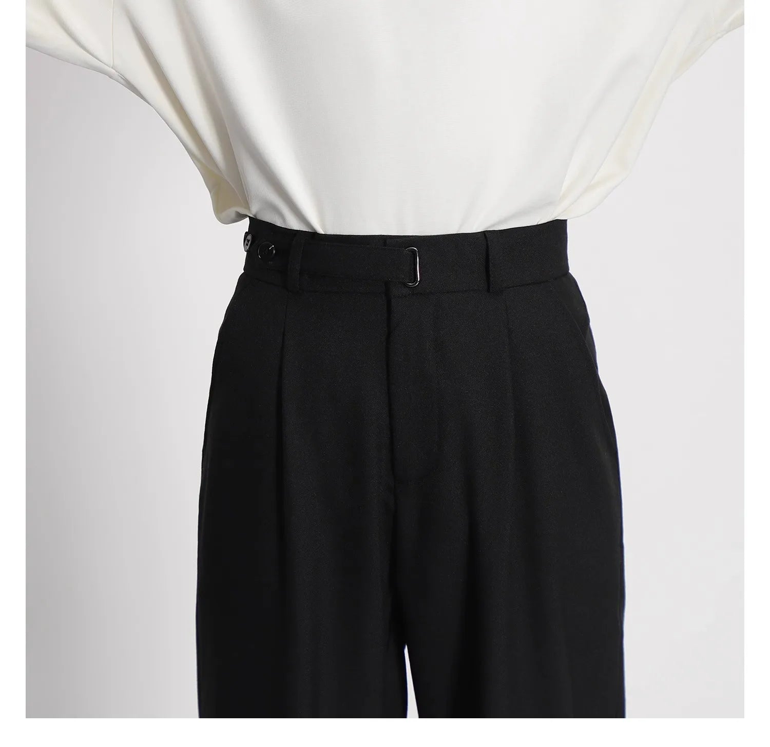 WIAOFELLAS - Light luxury Solid Suit Pants Men Loose straight Trousers Fashion Business Society Korean Casual Pants Adjustable Waist Belt