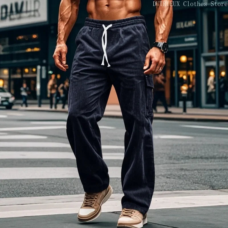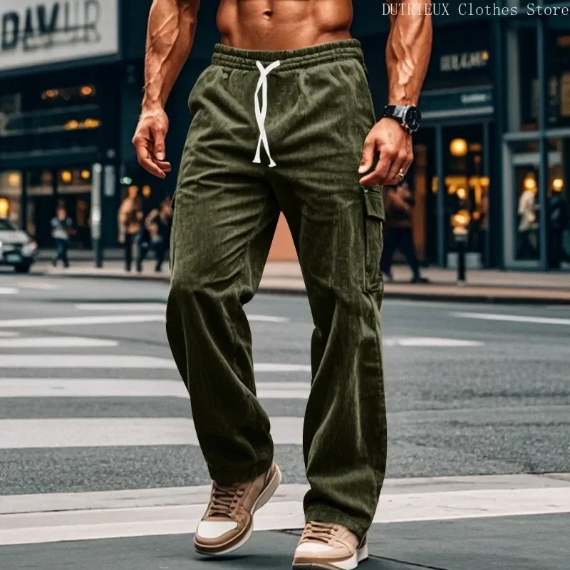 WIAOFELLAS - Loose Warm Fashion Cargo Straight Pants Autumn and Winter New High-quality Corduroy Men's Casual Pants Fitness Running Pants Gym