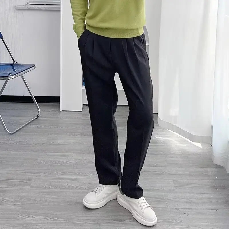 WIAOFELLAS - Ltalian Style Gentleman Suit Pants For Men Business Casual Slim Fit Naples Trousers Fashion Paris Buckle Straight Pants