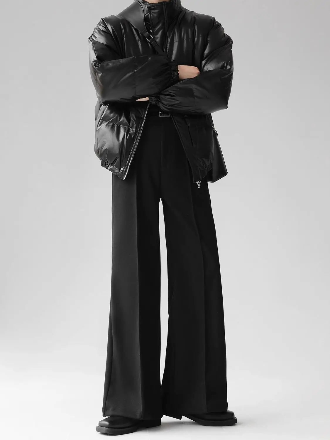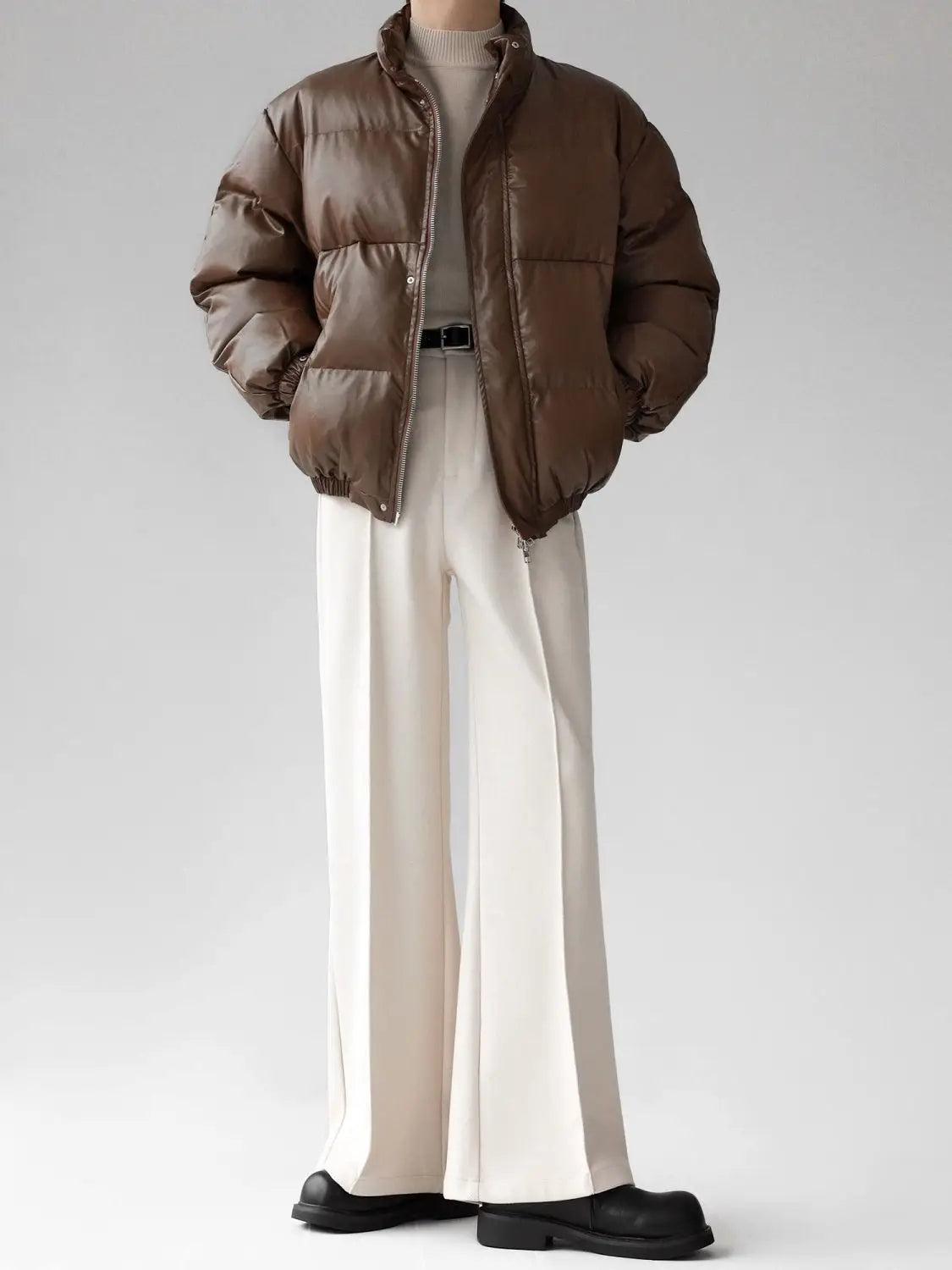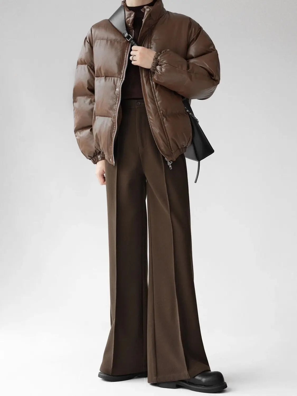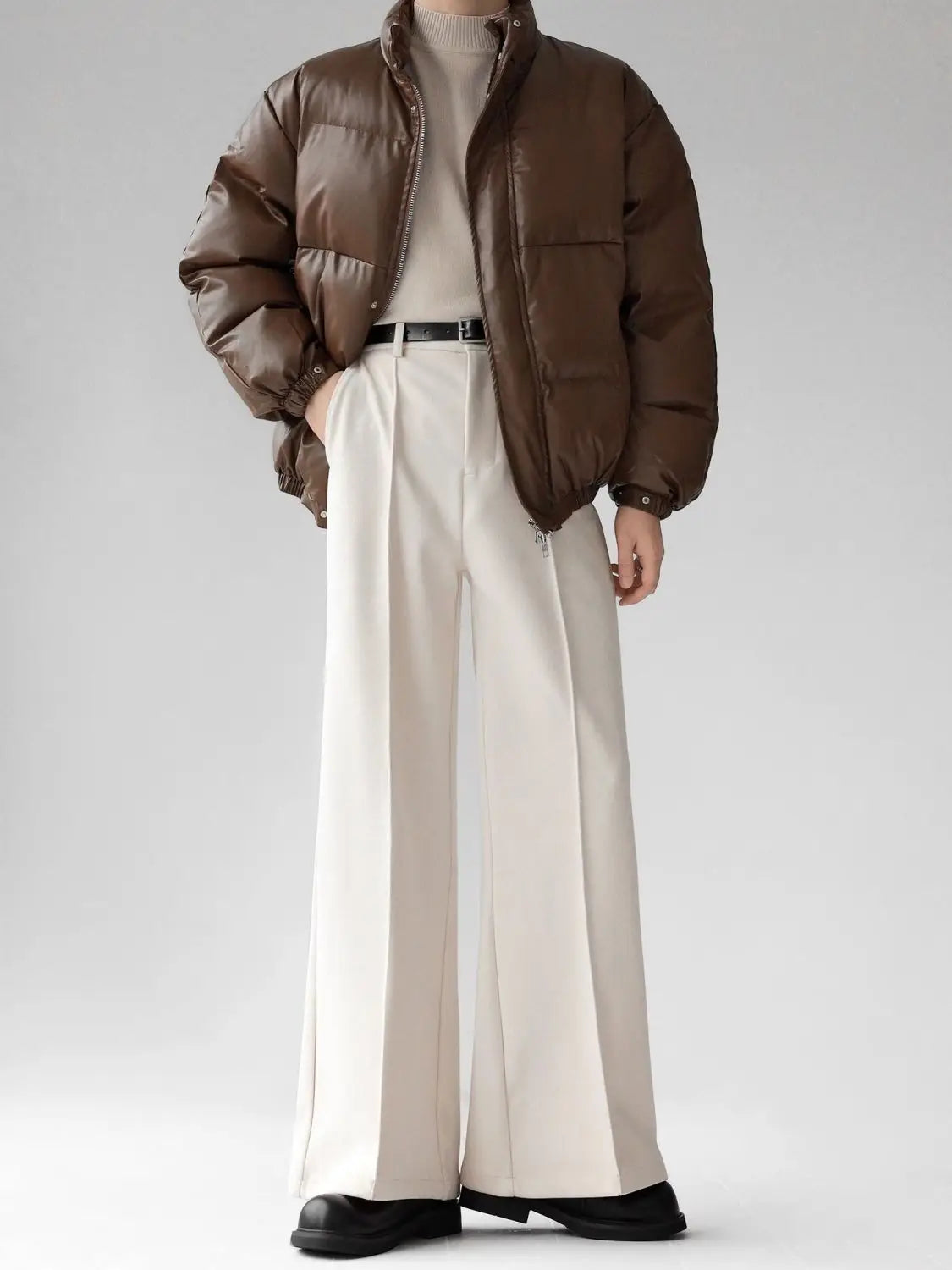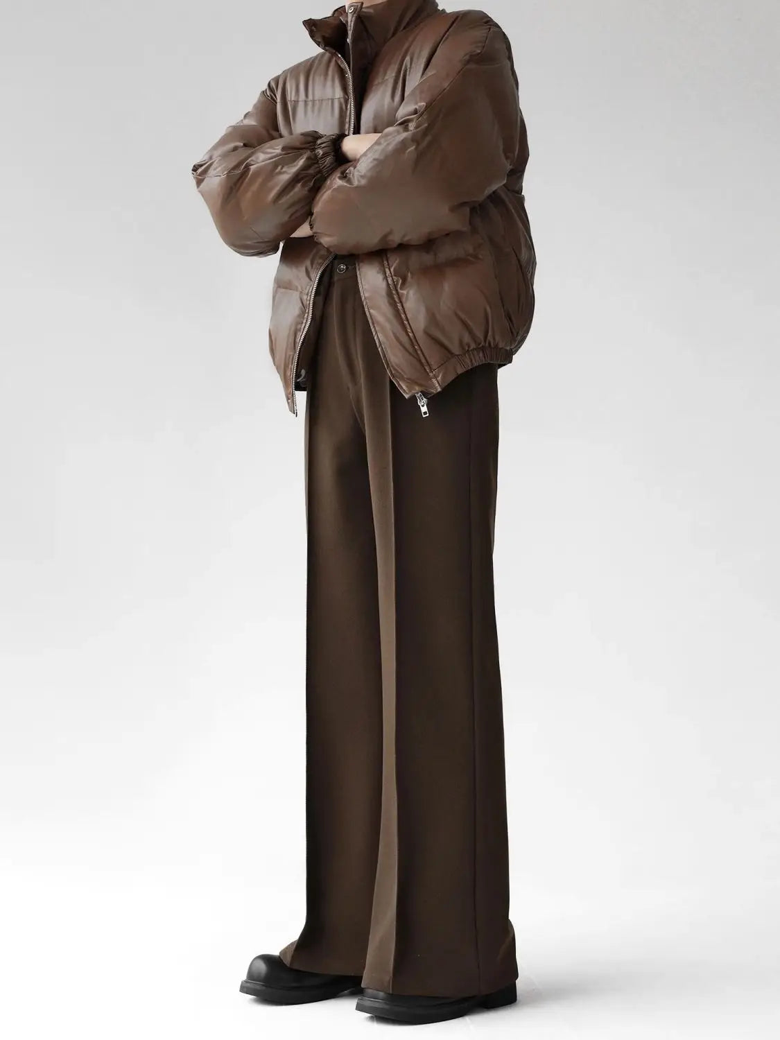 WIAOFELLAS - Maillard brown scimitar pants for men in summer loose slim and high drooping high floor slim trousers