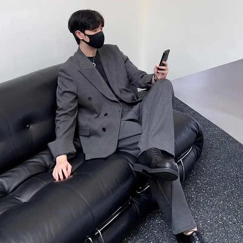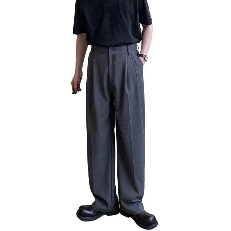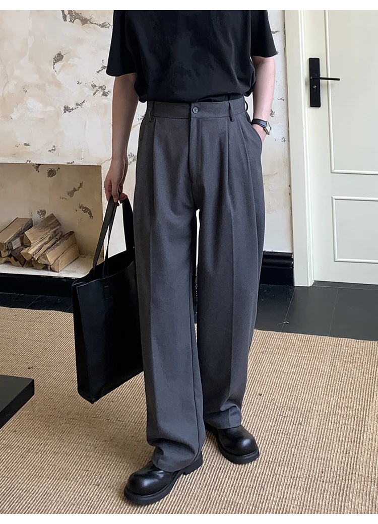 WIAOFELLAS - Men Autumn Winter Thick Material Loose Casual Retro Fashion Wide Leg Suit Trousers Office Man Commuter Business Baggy Pants