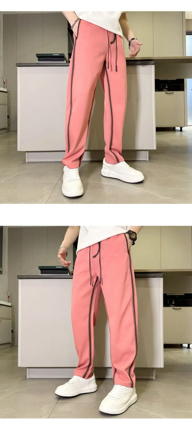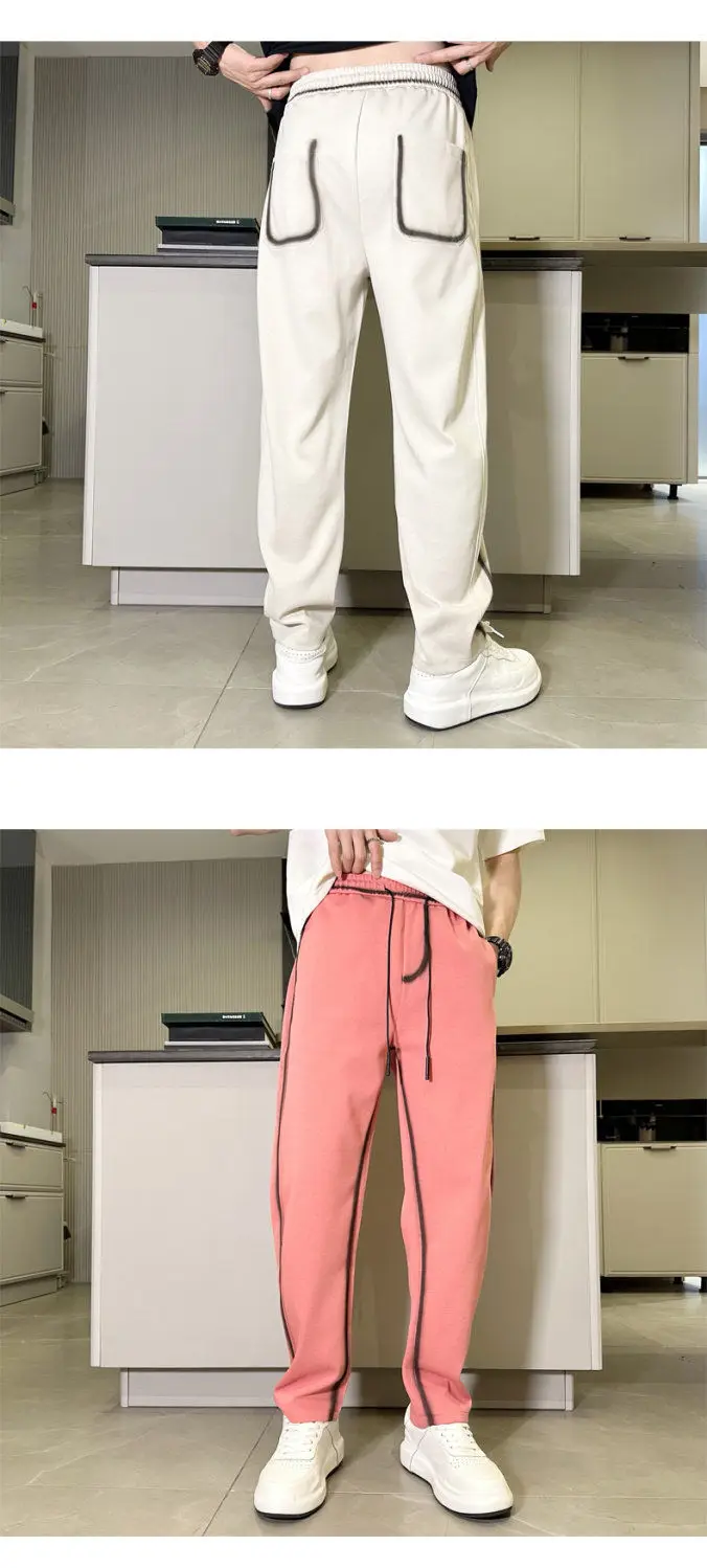 WIAOFELLAS - Men Clothing Autumn Fashion Casual Sports Running Straight Pants Y2K Streetwear Contrast Color Loose Trousers Pantalones Hombre